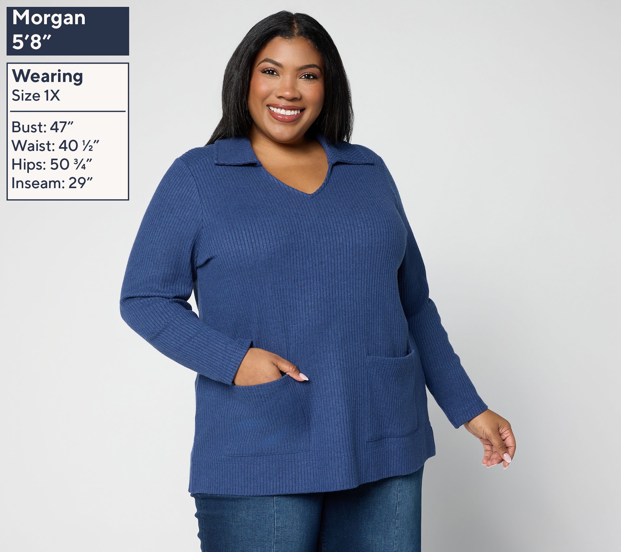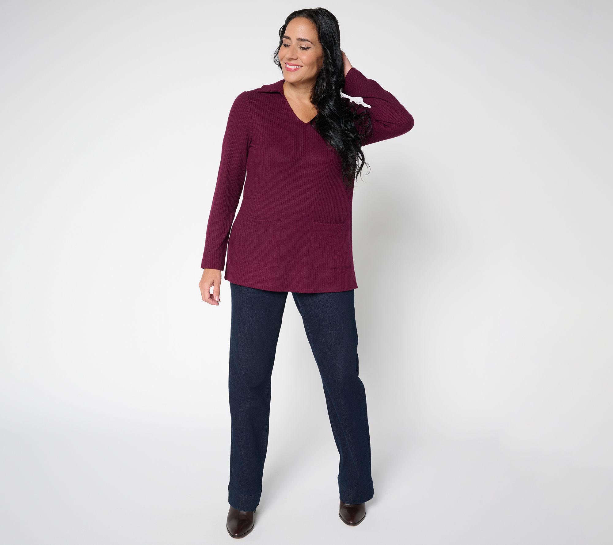 Crafted in a beautifully soft yet structured ribbed knit, this collared tunic keeps you polished and poised to attend a meeting one moment... and comfortably outfitted to chase the pups, kids, or your passions the next! From Susan Graver.