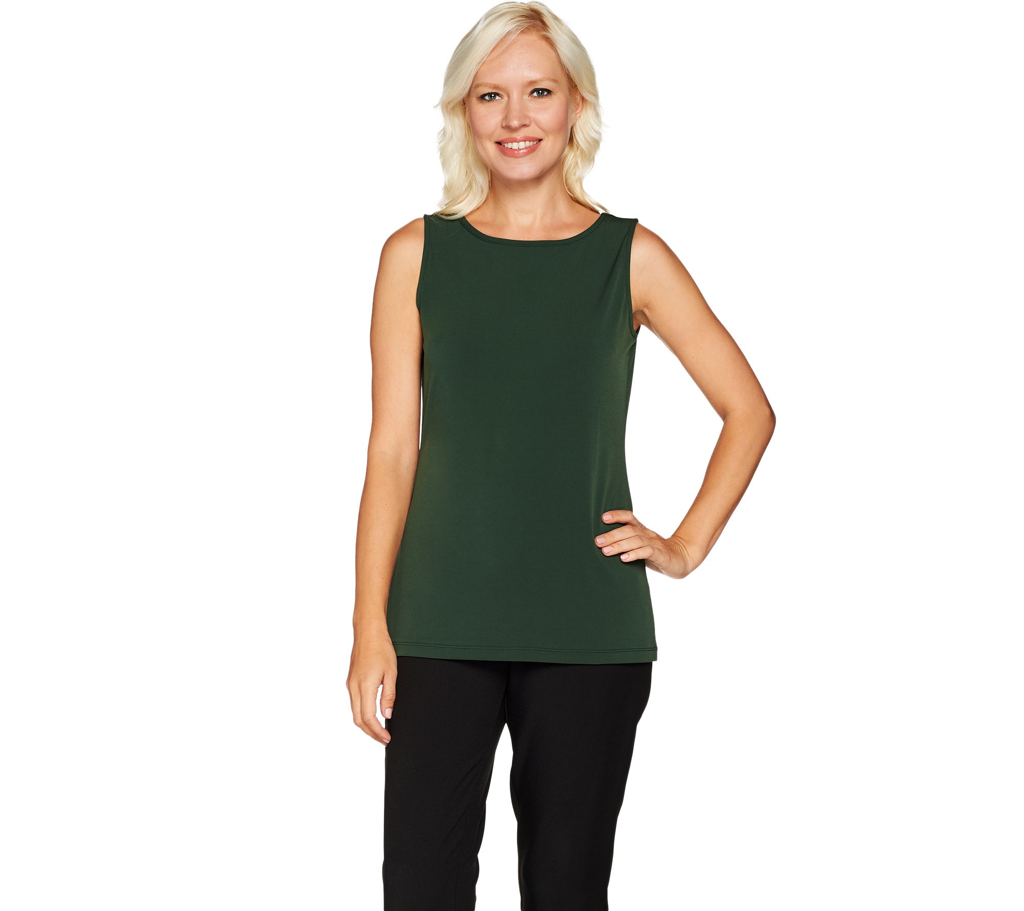- Tank Features: scoop neckline, sleeveless, straight bottom hem