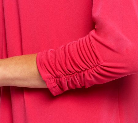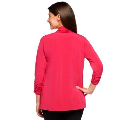 Cardigan: 3/4 length ruched sleeves, open cascading front