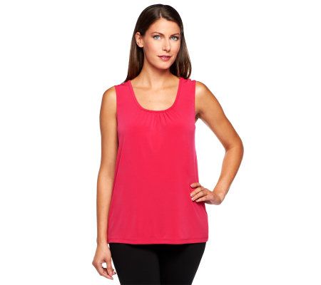 Tank: scoop neckline with shirring, straight bottom hem