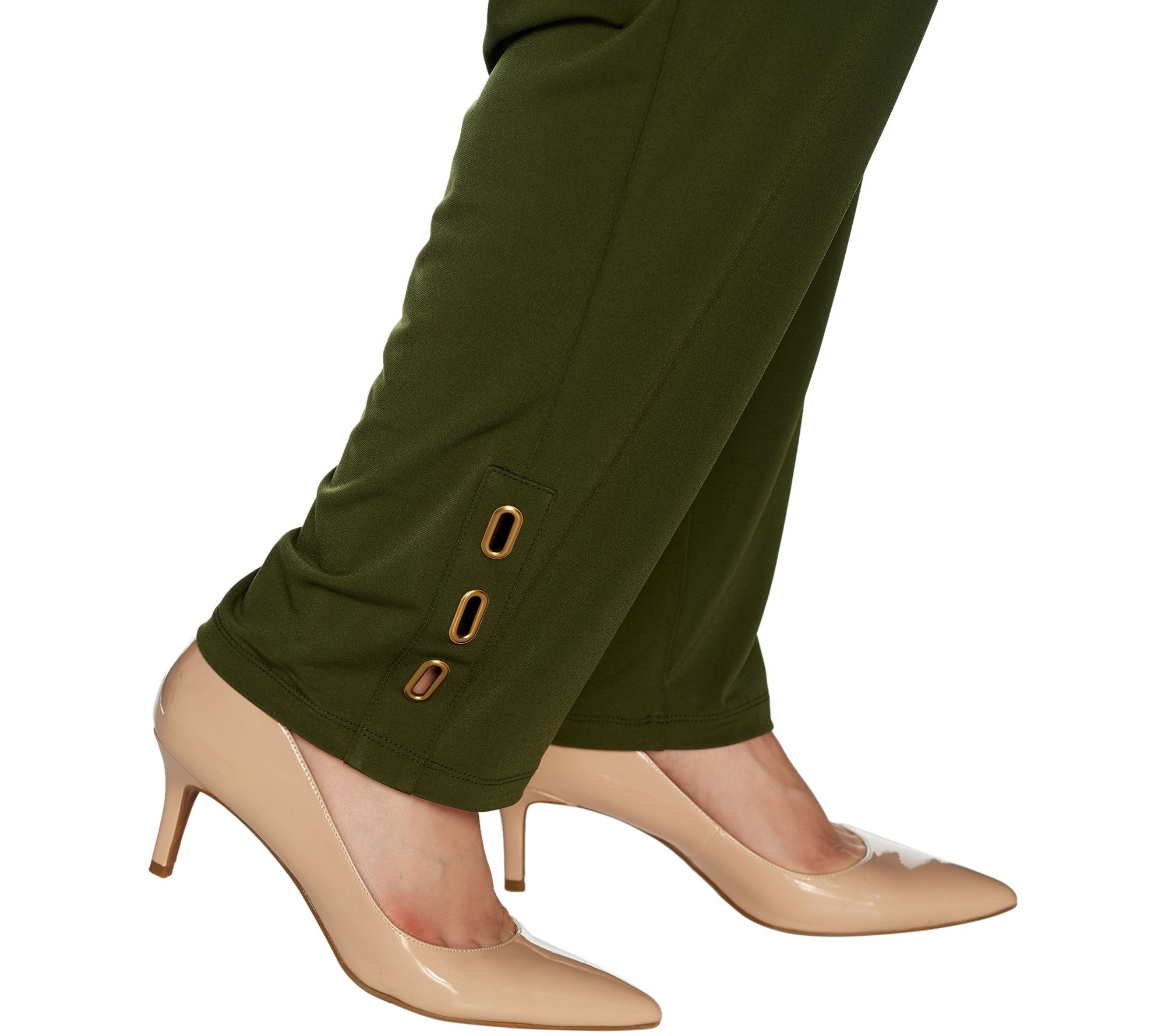 For those dressier days, choose these drapey Liquid Knit pants with grommet detail at the ankles to amp up your ensemble. From Susan Graver.