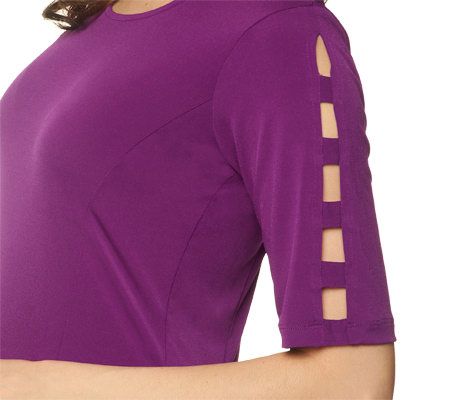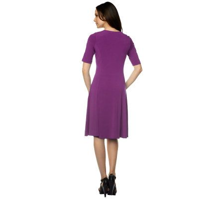A major must-have. this fun, flirty dress from Susan Graver is your go-to piece for style in a snap. The scoop neckline and banded, split sleeves offer simple yet stylish appeal, while the A-line silhouette frames your figure in all the right places. And thanks to its best-selling Liquid Knit(R) fabric and princess seams, this dress is as flattering as it is fabulous!