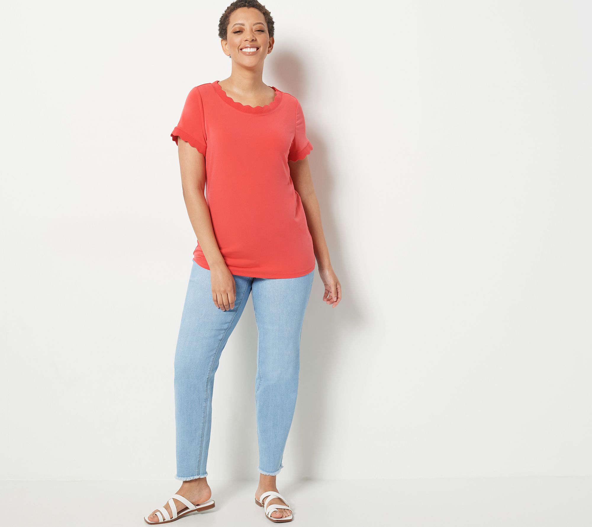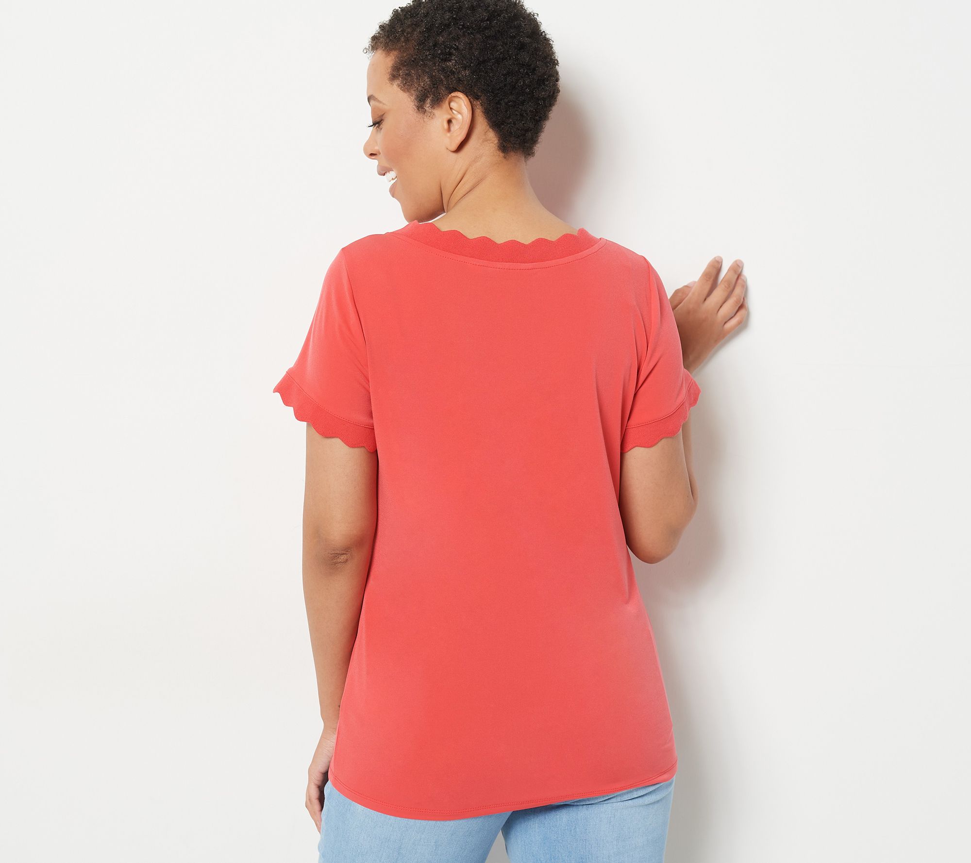 Susan Graver Liquid Knit Short Sleeve Top with Scalloped Rib