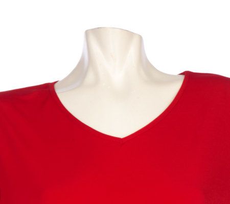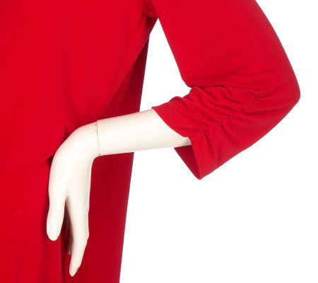 Susan Graver Liquid Knit Solid V-neck Tunic with Ruched Sleeves