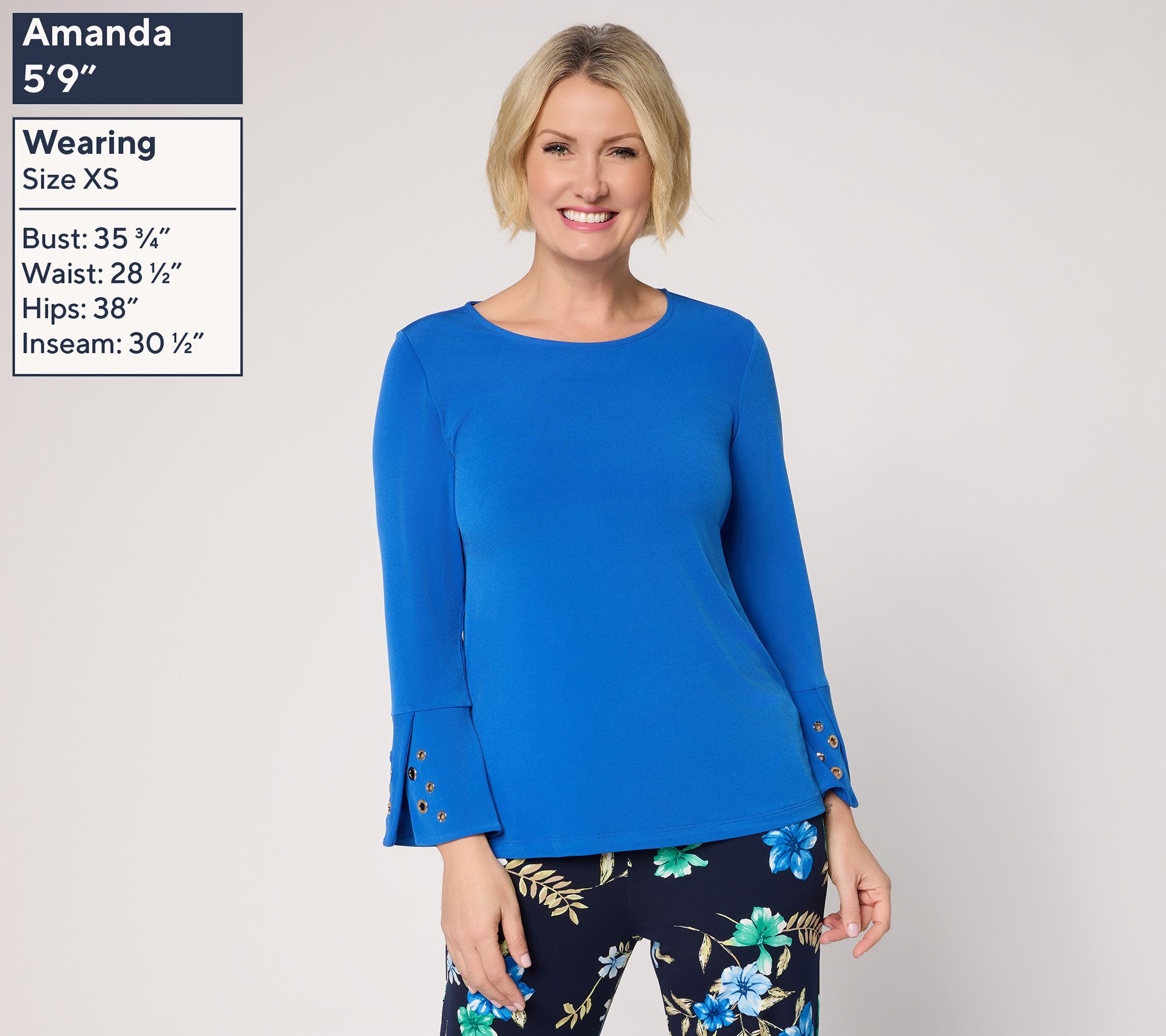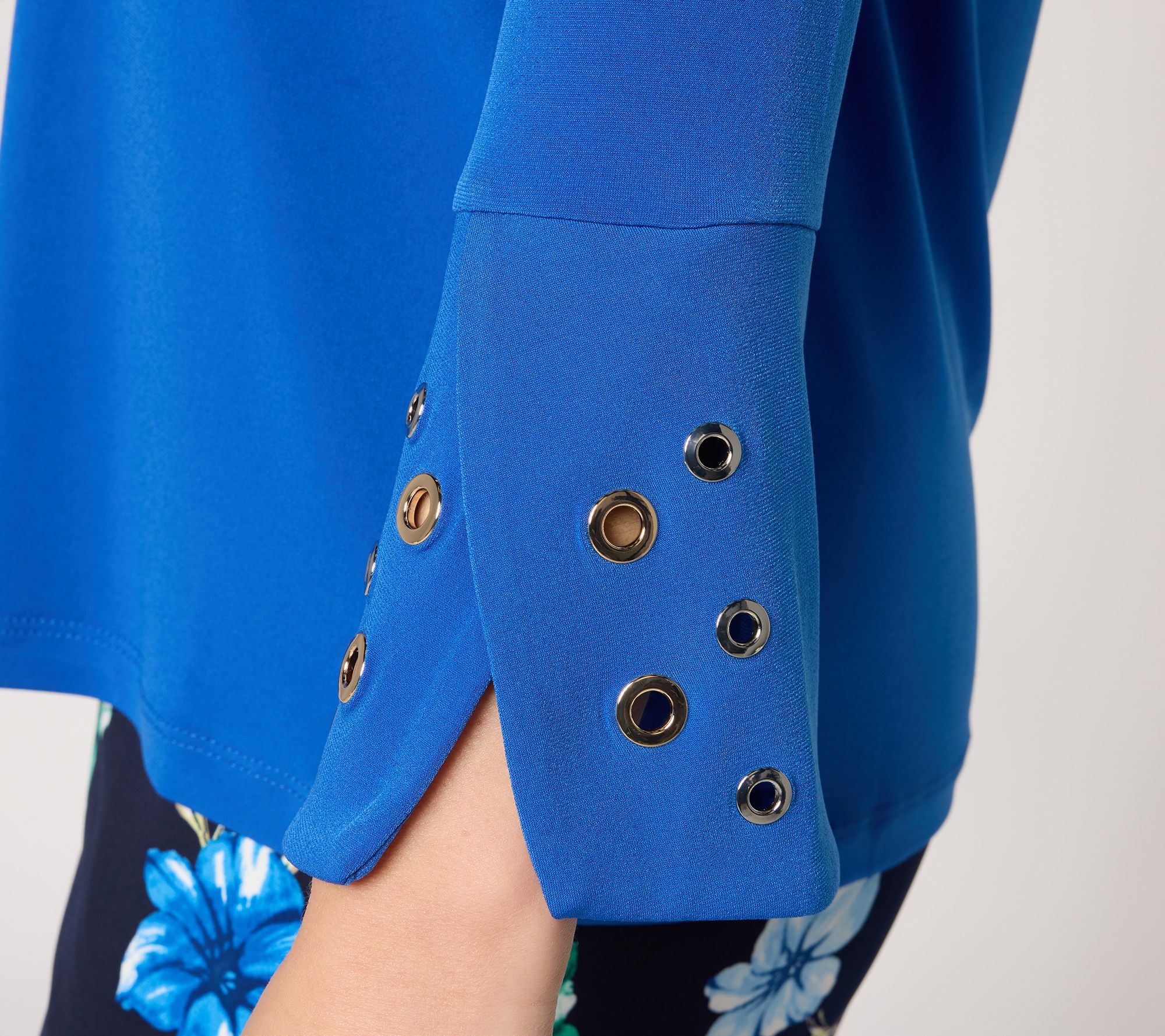 Susan Graver Liquid Knit Top w/ Metal Grommet Sleeve Detail