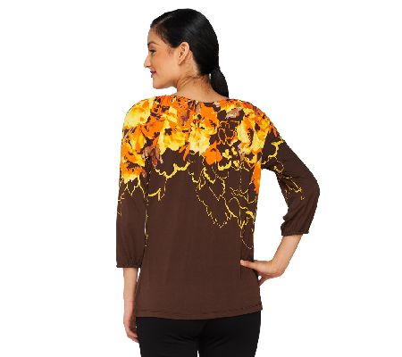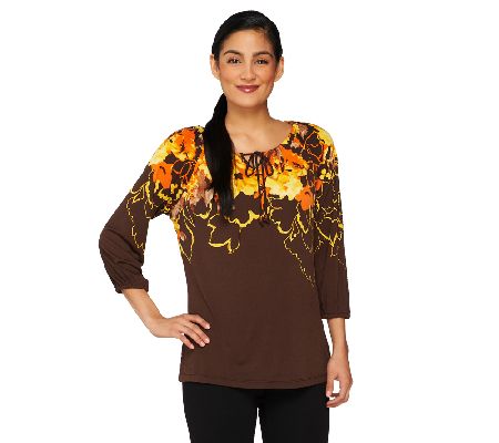Susan Graver Long Sleeve Printed Tunic with Key Hole Detail