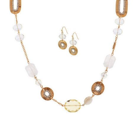 Susan Graver Long Strand Necklace & Earring Set