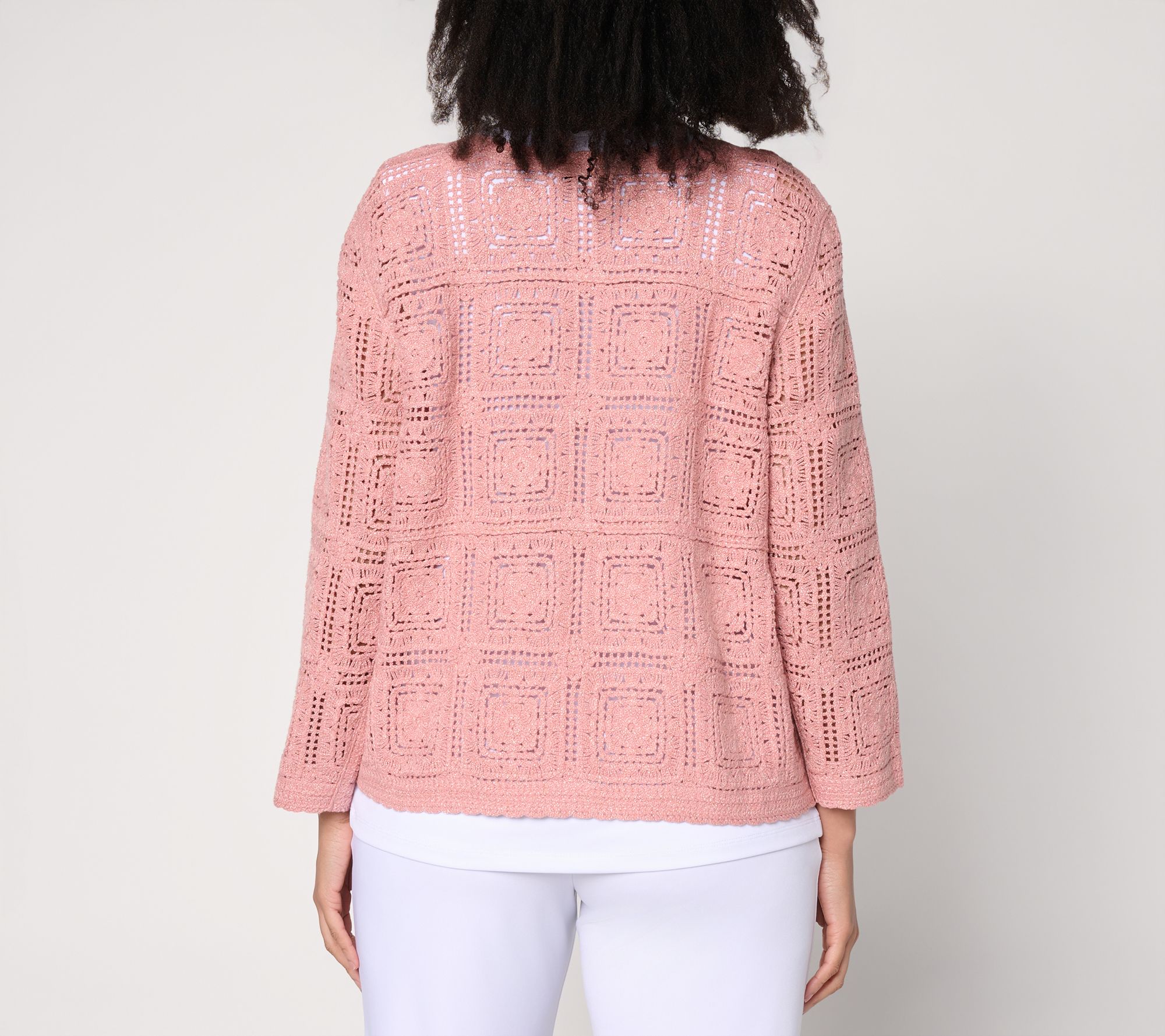 Susan Graver Metallic Crochet Lace Sweater Knit Shrug