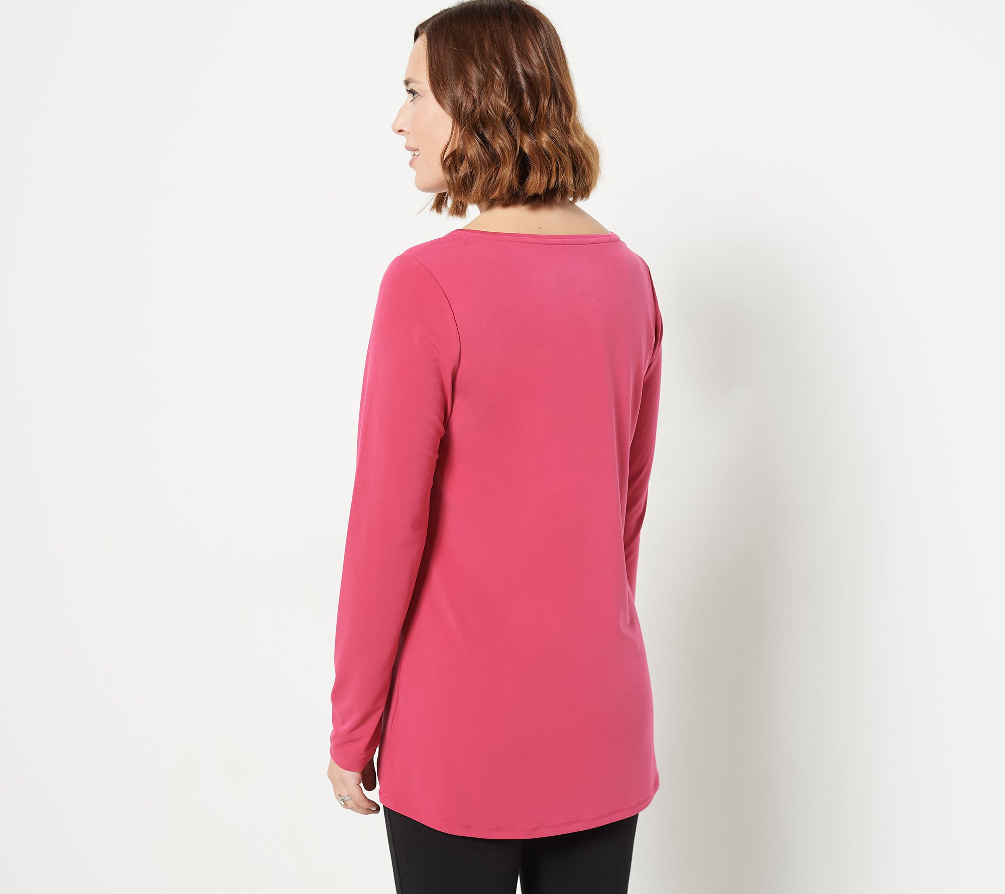Super-soft, super-cozy, super-essential, this everyday-fab, hi-lo hem top is the perfect transitional piece from balmy days to chilly evenings. Pair it with your leggings for an extra-cas vibe, or your favorite pair of wide-leg denim for a trend-right look. From Susan Graver.