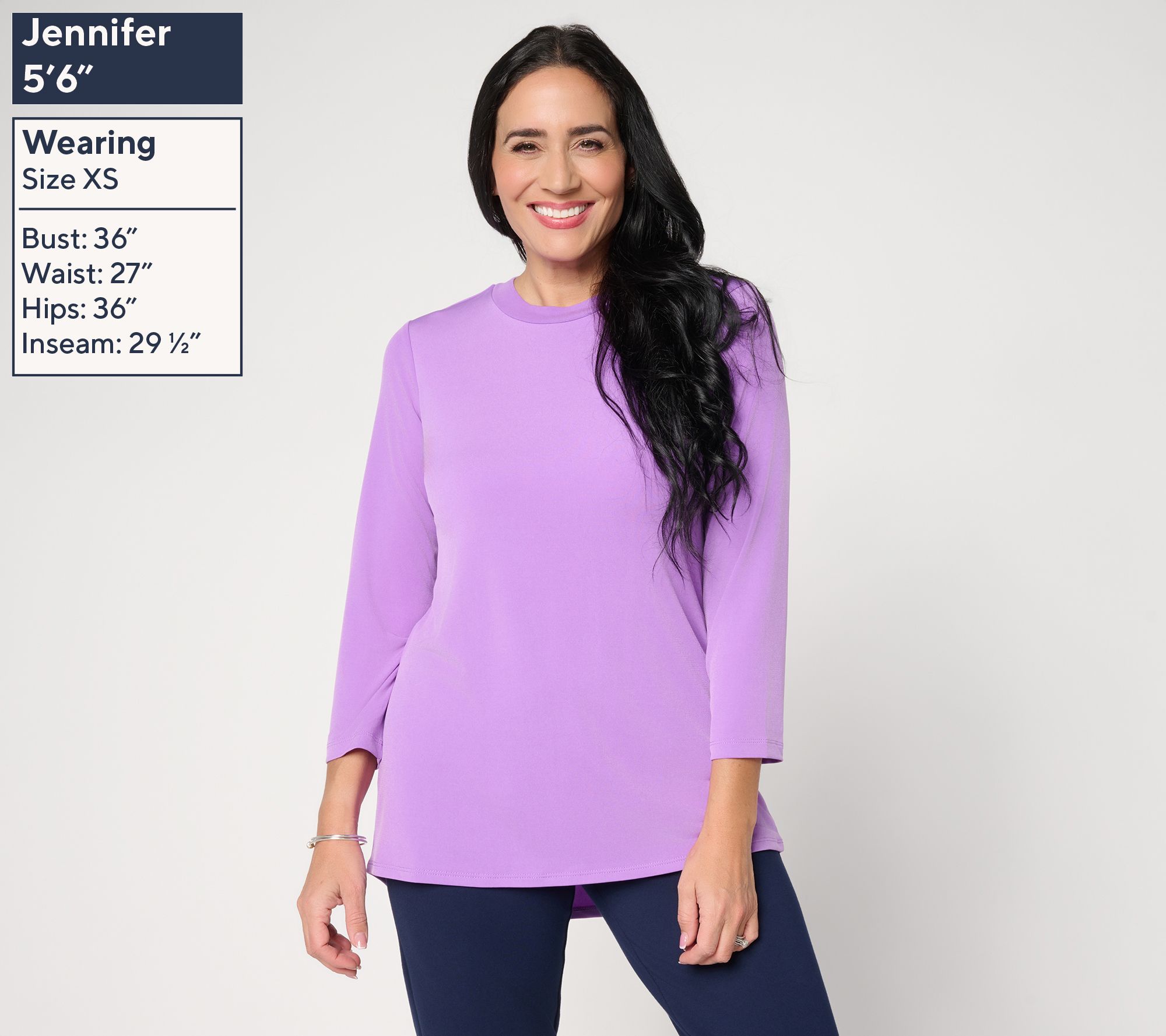 • Features: crew neckline, 3/4-length sleeves, hi-low hemline