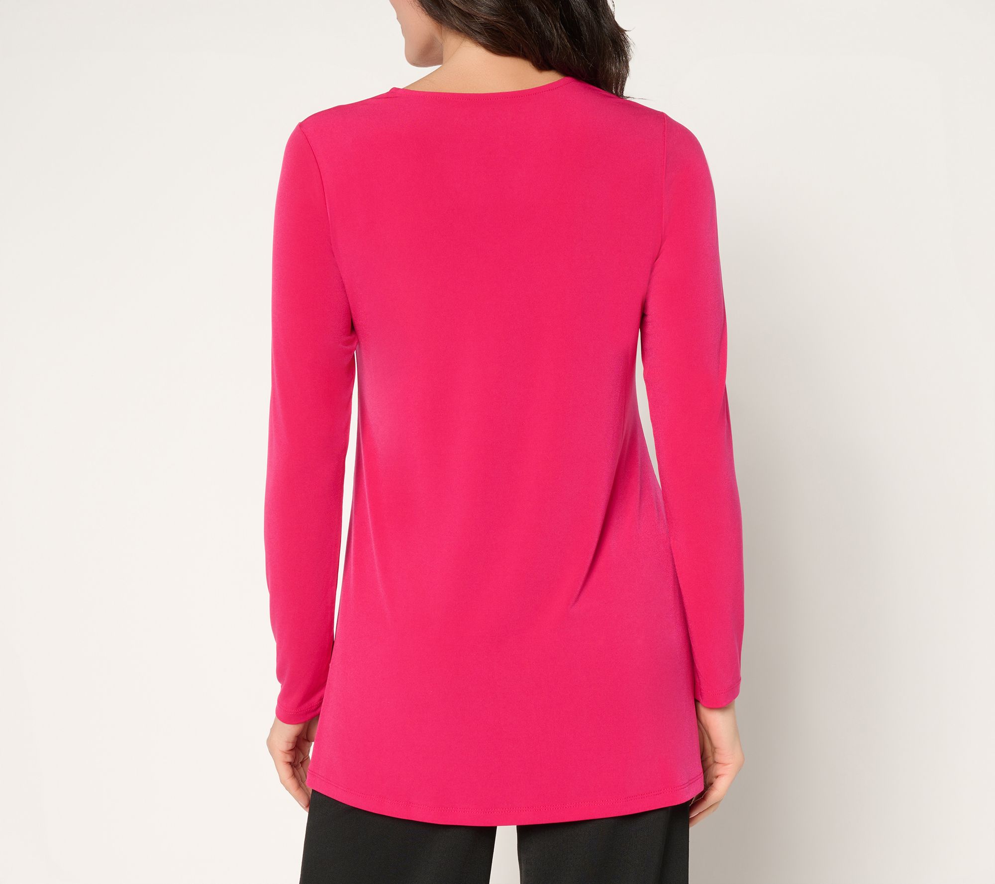 Crafted with smooth-as-butter Liquid Knit®, this tunic top flares to an A-line bottom opening, giving you plenty of movement and swing with every step. Pair it with jeans or leggings, for a daily-wear vibe. From Susan Graver.