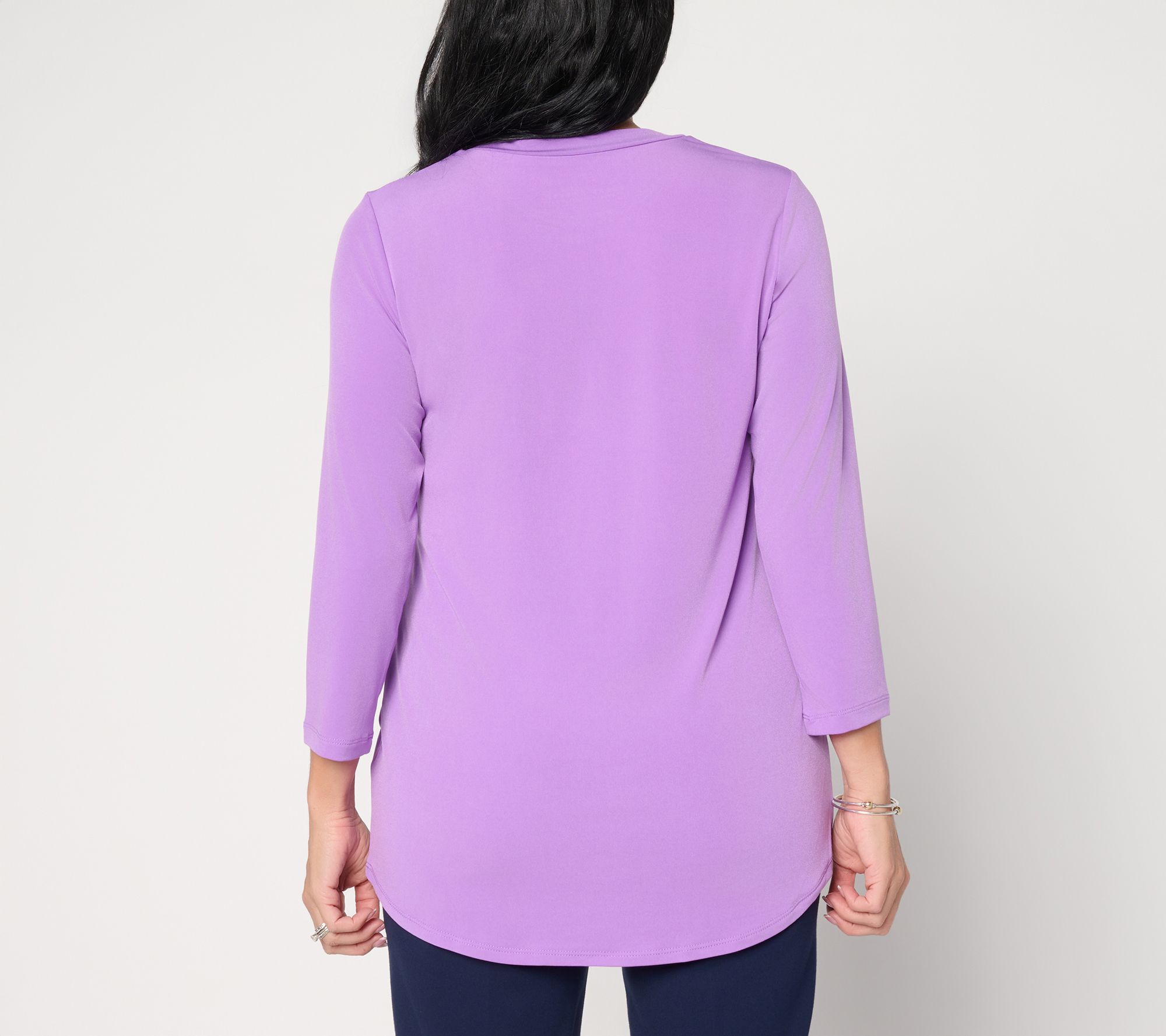 • Features: crew neckline, 3/4-length sleeves, hi-low hemline