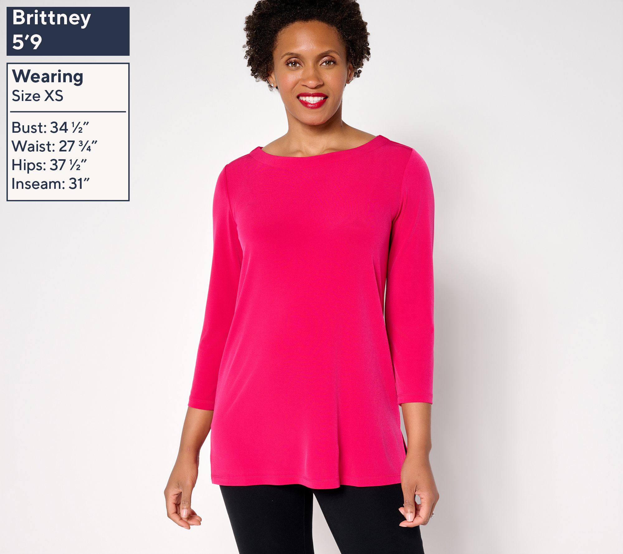 Cue the stock-up alert, 'cause you're going to want one of these essential Liquid Knit® tunics in every. single. color. We can see it now: draped over capris as you stroll sea-side shops, or tucked under a cardi during a crisp fall outing. This buttery-soft style has all the seasons on lock. With styling possibilities a-plenty and a chic bateau neckline for added "oomph," this must-have truly has it all. From Susan Graver.