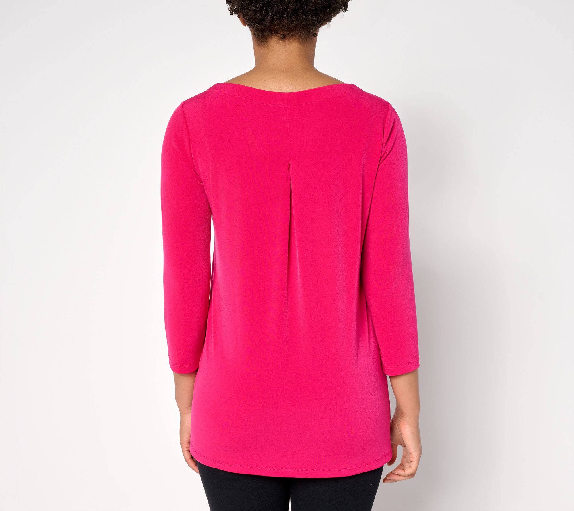 Features: bateau neckline, 3/4-length sleeves, back pleat detail