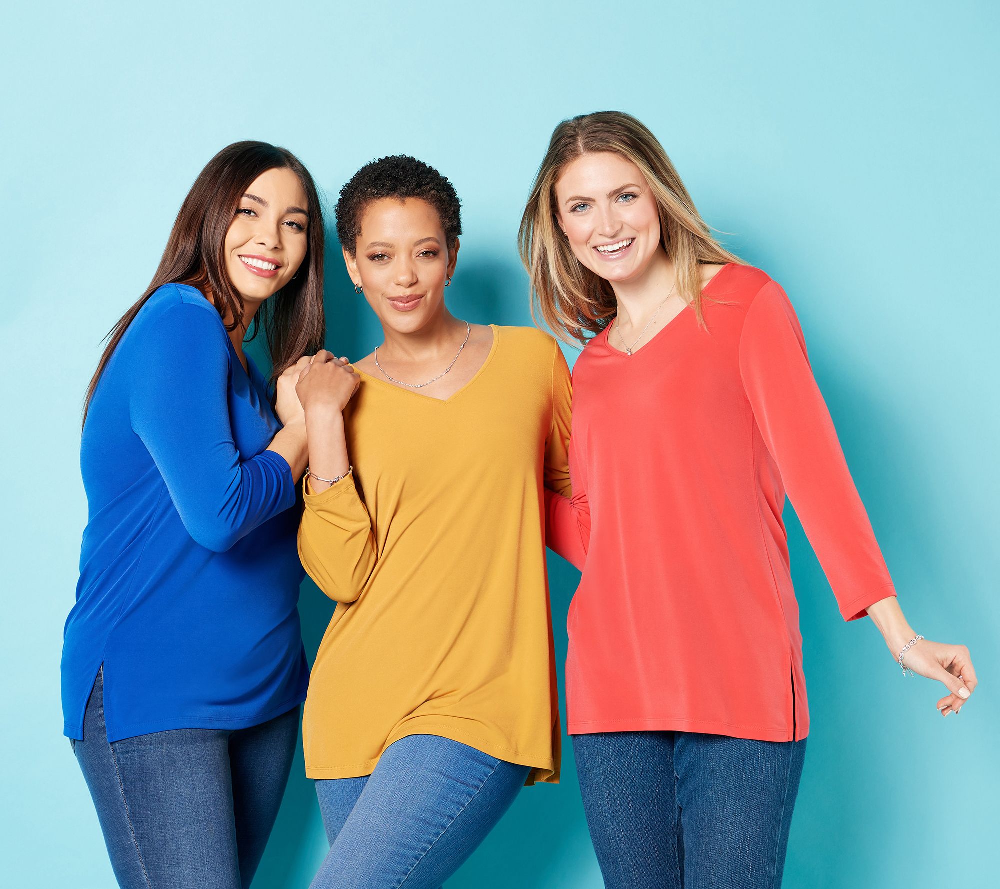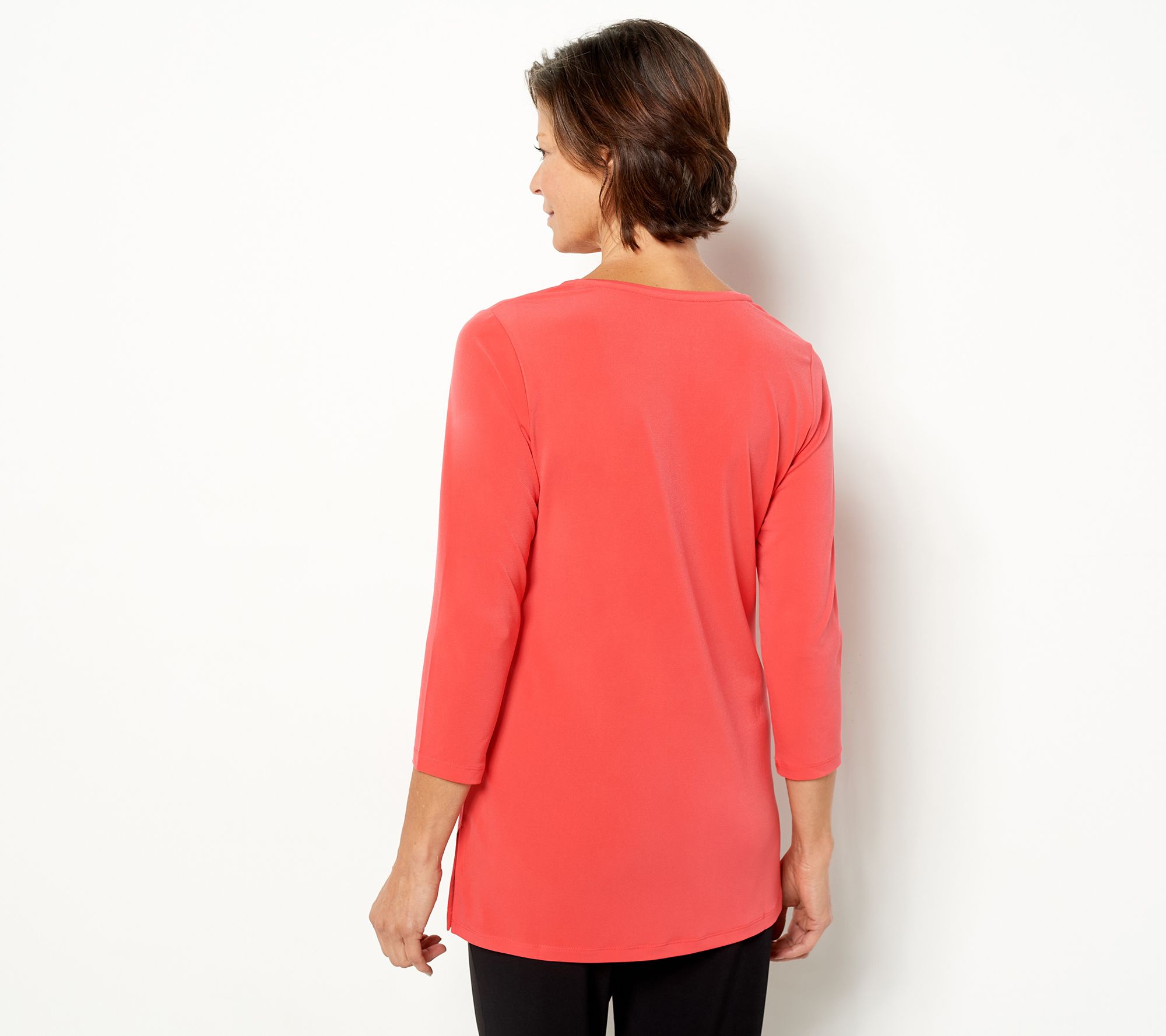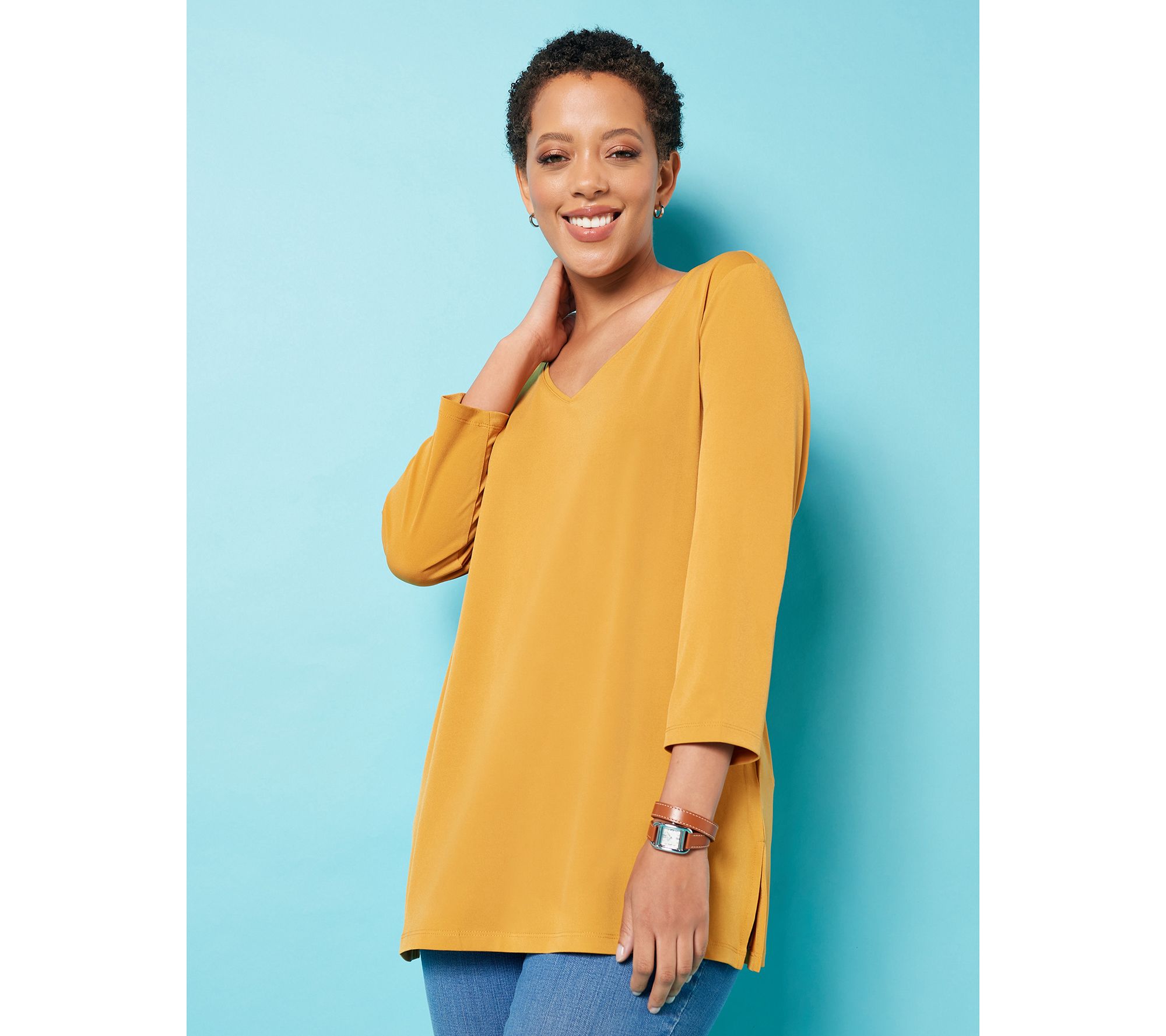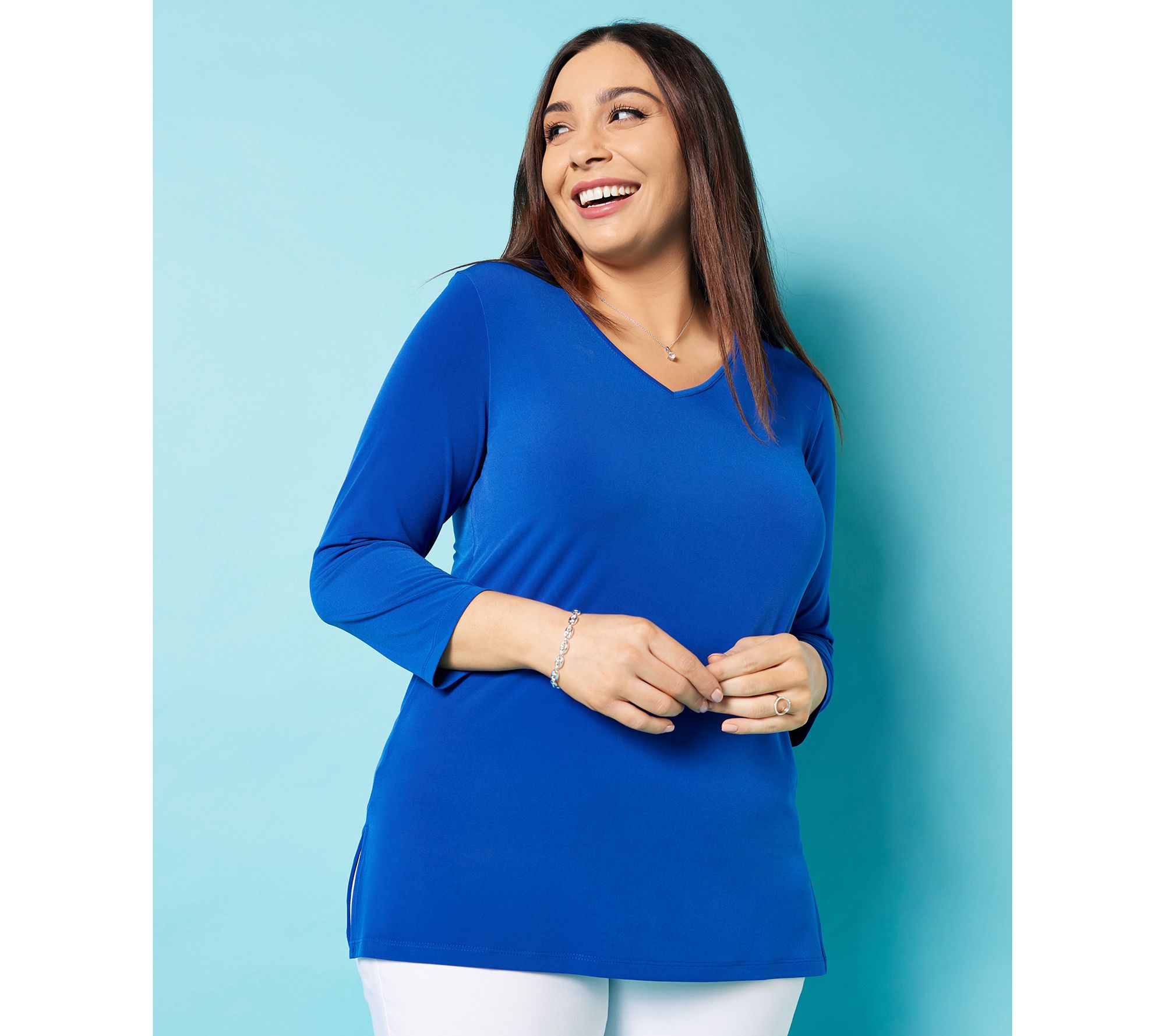 3/4-length sleeves? Check. V-neckline? Yes, indeed. A new go-to top that's oh-so-versatile? You bet! Plus, it's made of Liquid Knit® fabric that's so cozy you'll want to melt. From Susan Graver.