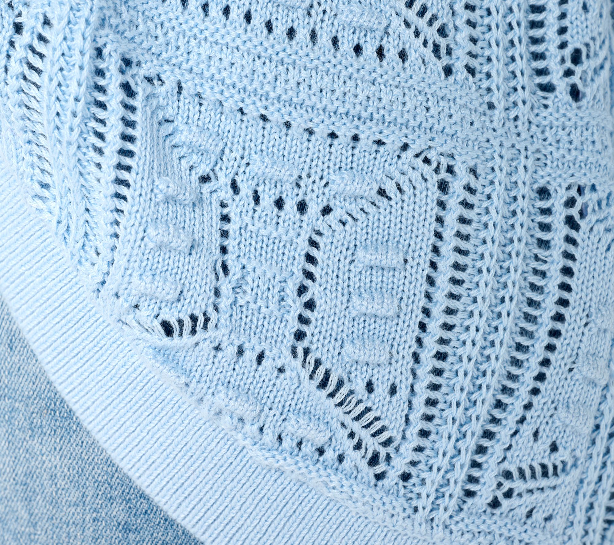 Features: open front; rib neckline, curved front panels, and bottom opening