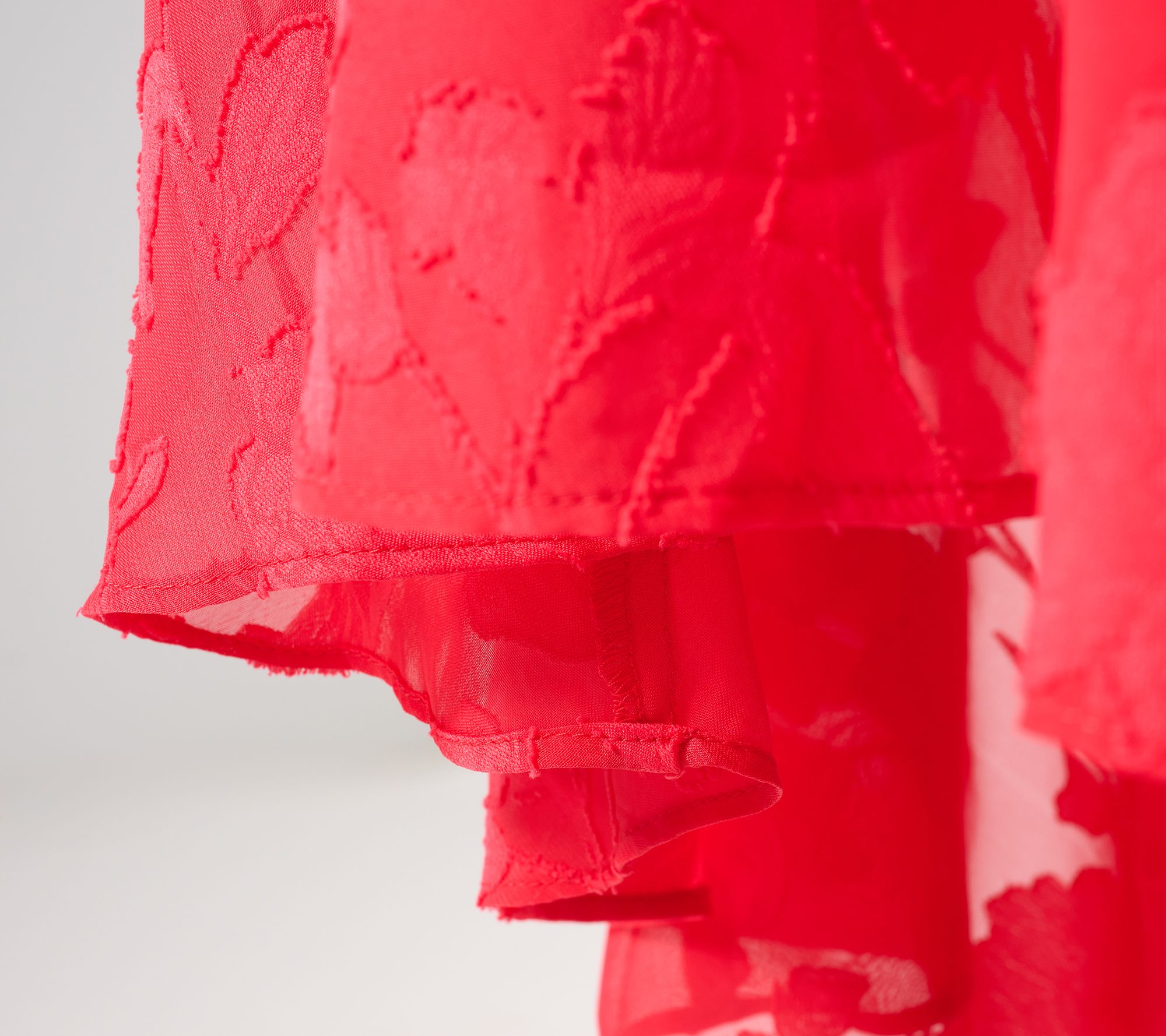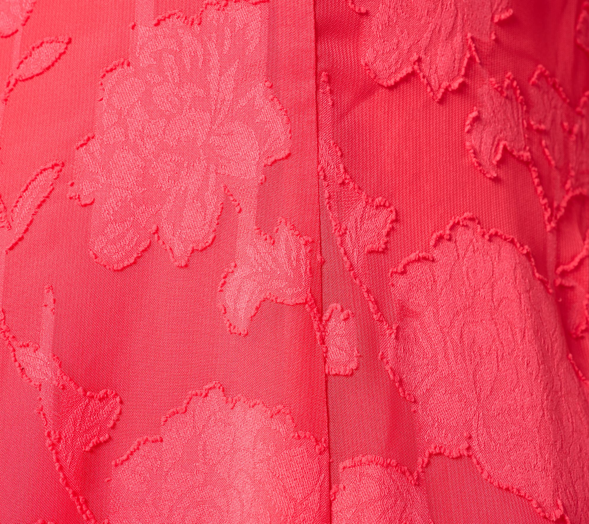 Those strappy sandals you scored on sale? They'd look perf with this special-occasion dress from Susan Graver. The pretty jacquard overlay provides a playful peekaboo view past the knee, plus a flounce that's fit for more than a few twirls across the dance floor. From Susan Graver.