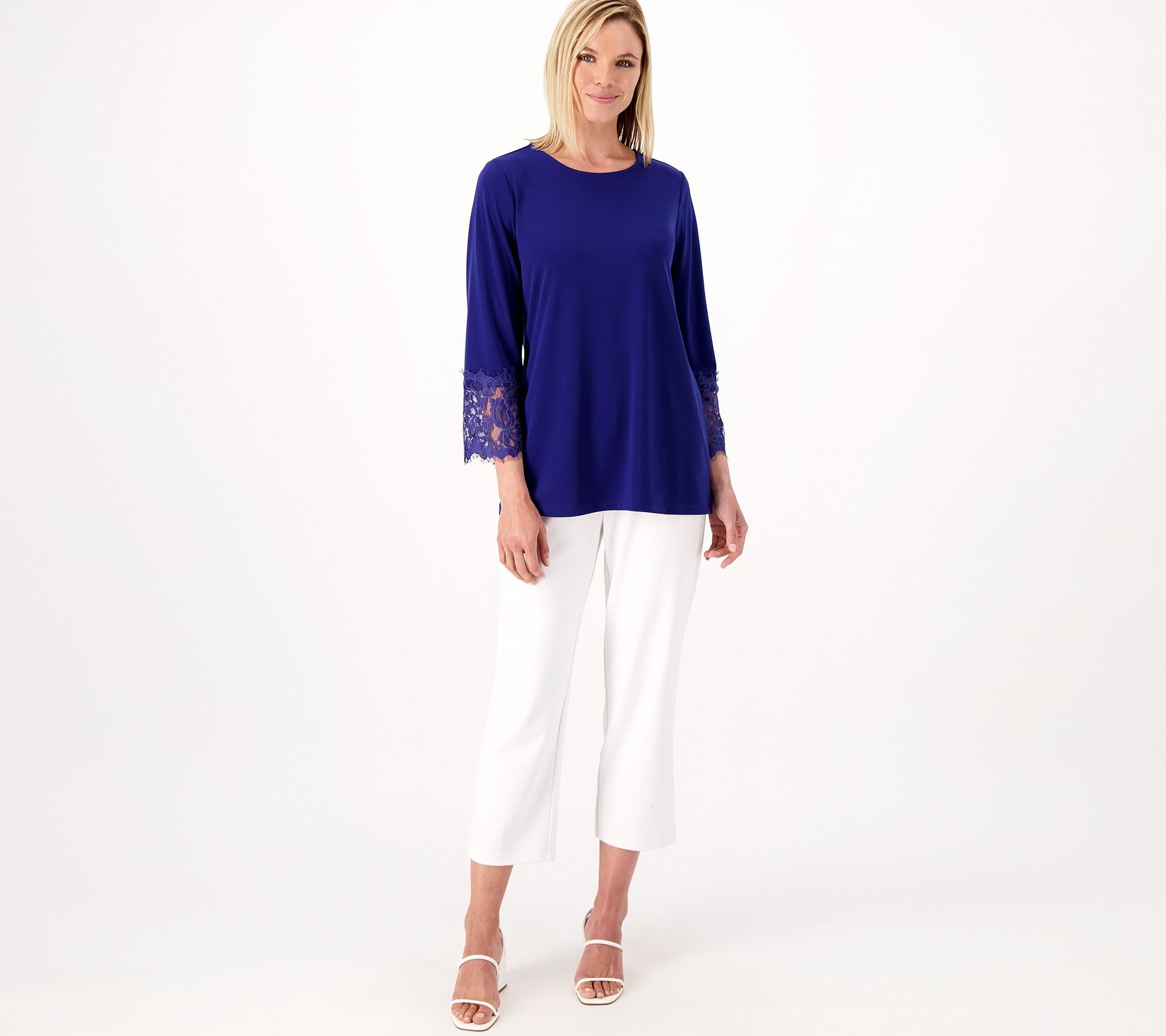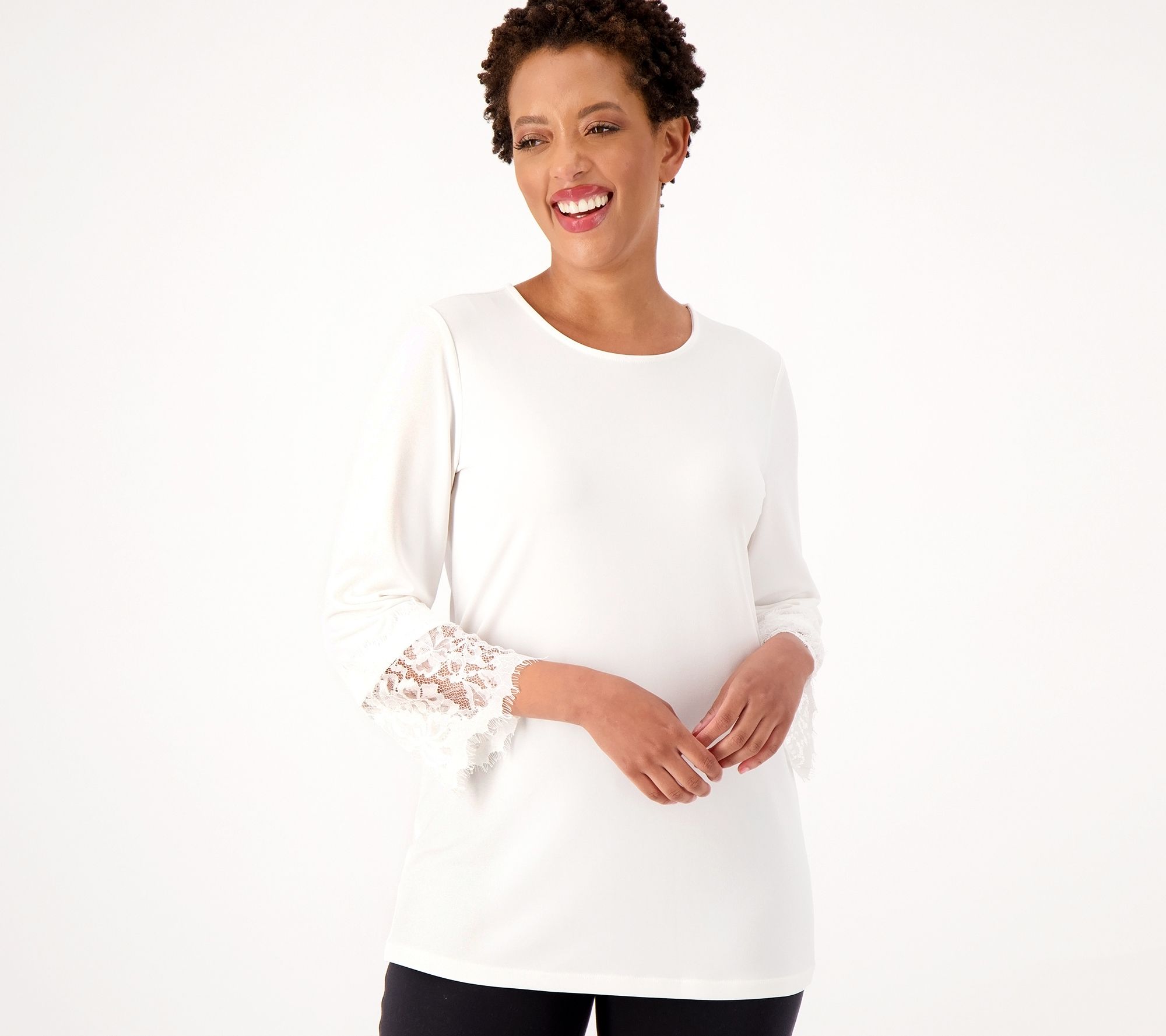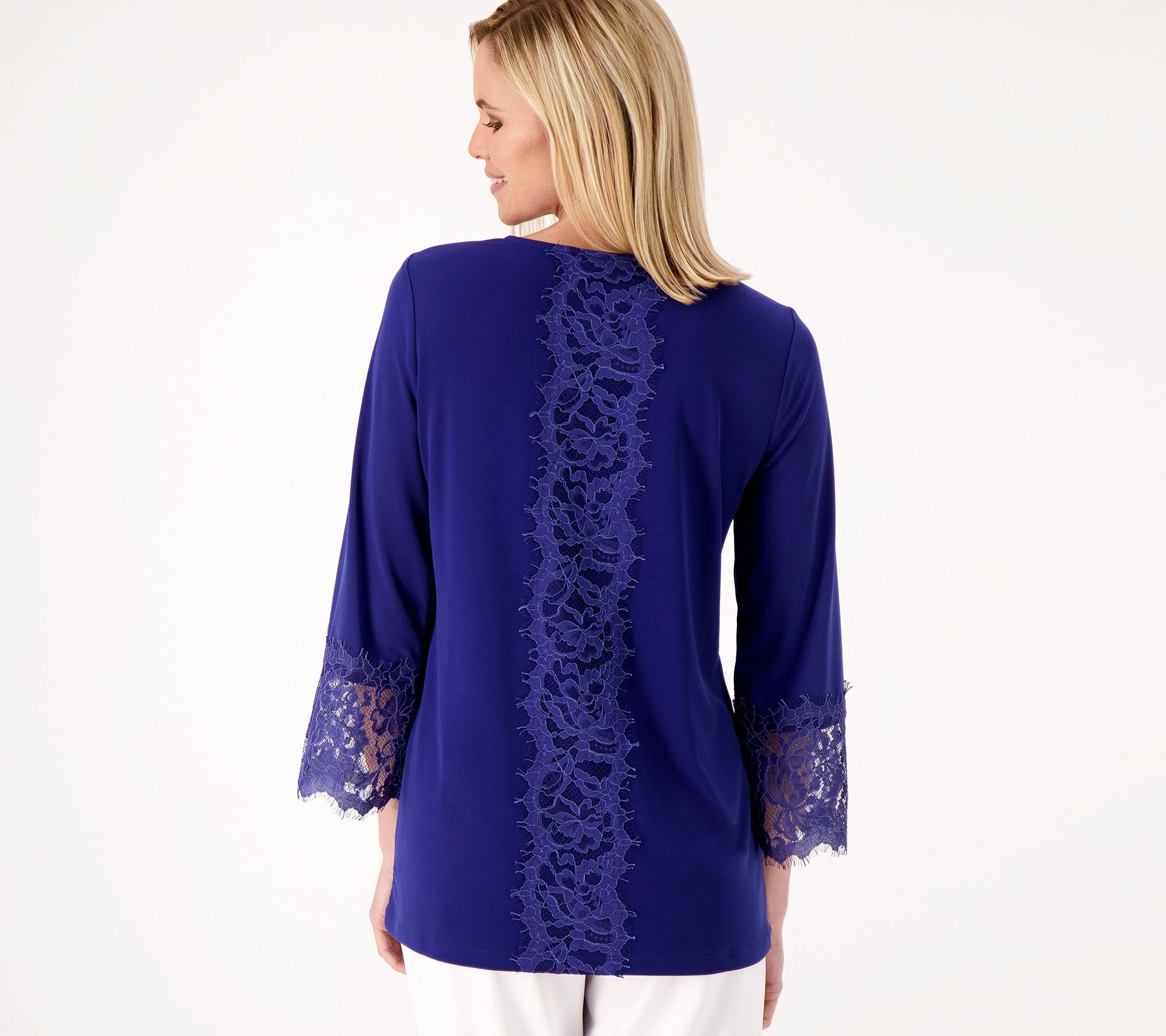 If you're looking for a top that stands out from the rest in your closet, this Liquid Knit® tunic is it. The lace detailing injects a splash of refined elegance into your everyday fashion rotation. From Susan Graver.