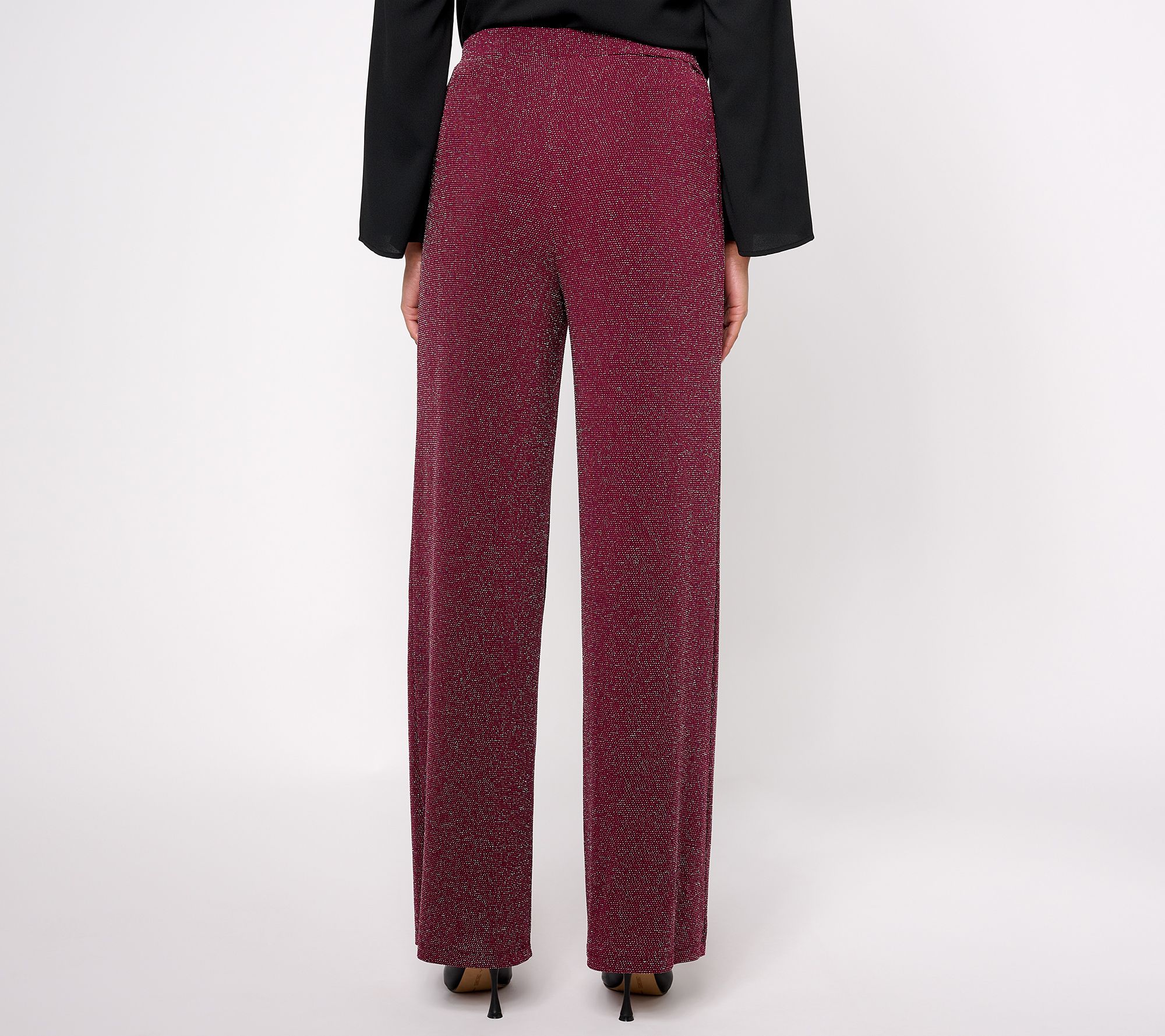 Create your best look yet when you treat yourself to these metallic knit pants. The possibilities are endless. From Susan Graver.