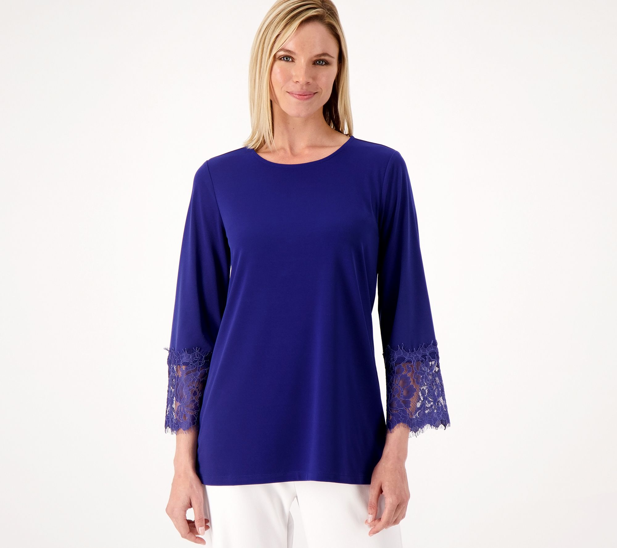 Susan Graver Occasions Reg Liquid Knit Tunic with Lace Details