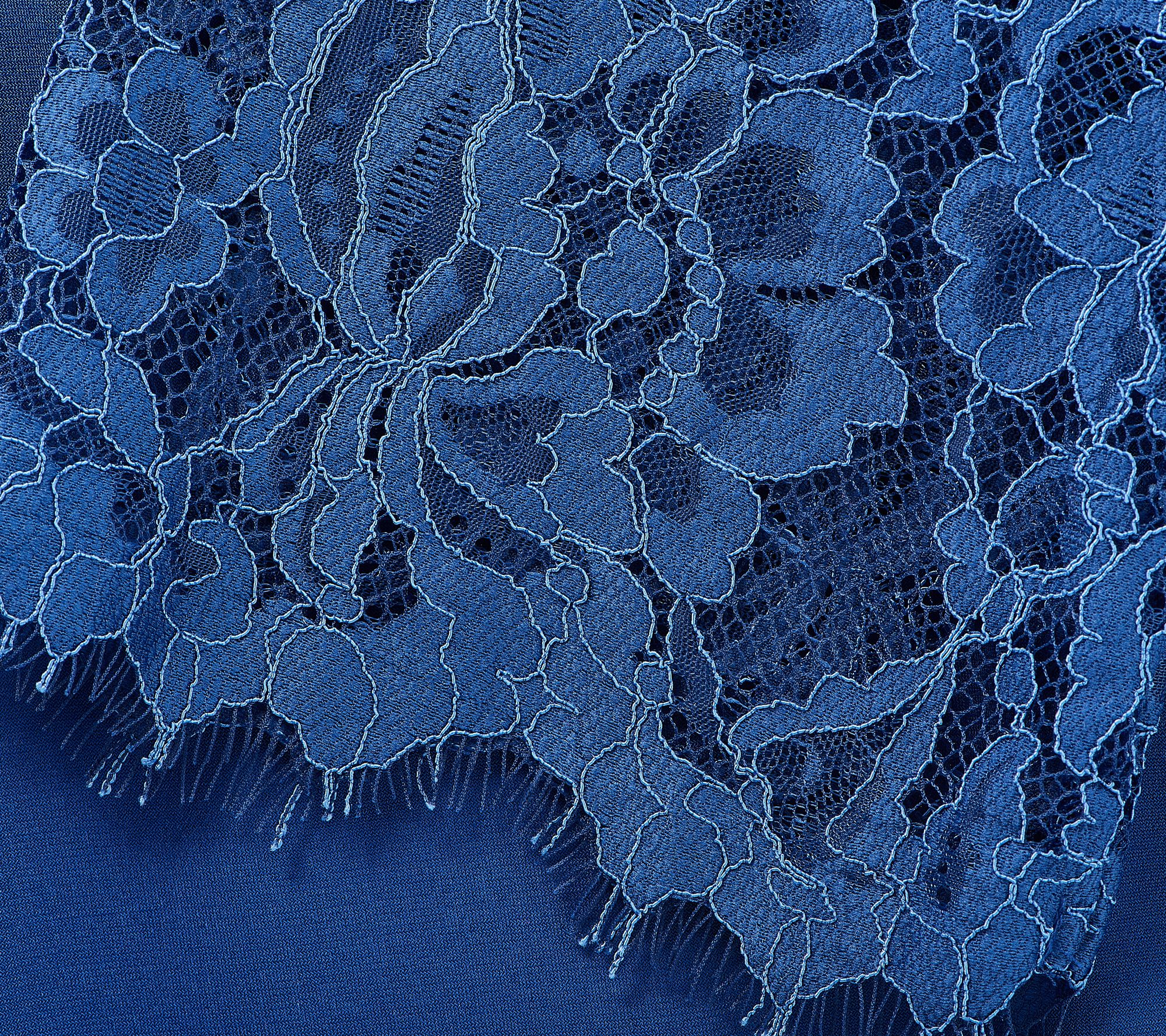 • Features: bracelet-length sleeves, lace detail at center back and sleeve openings, straight hemline