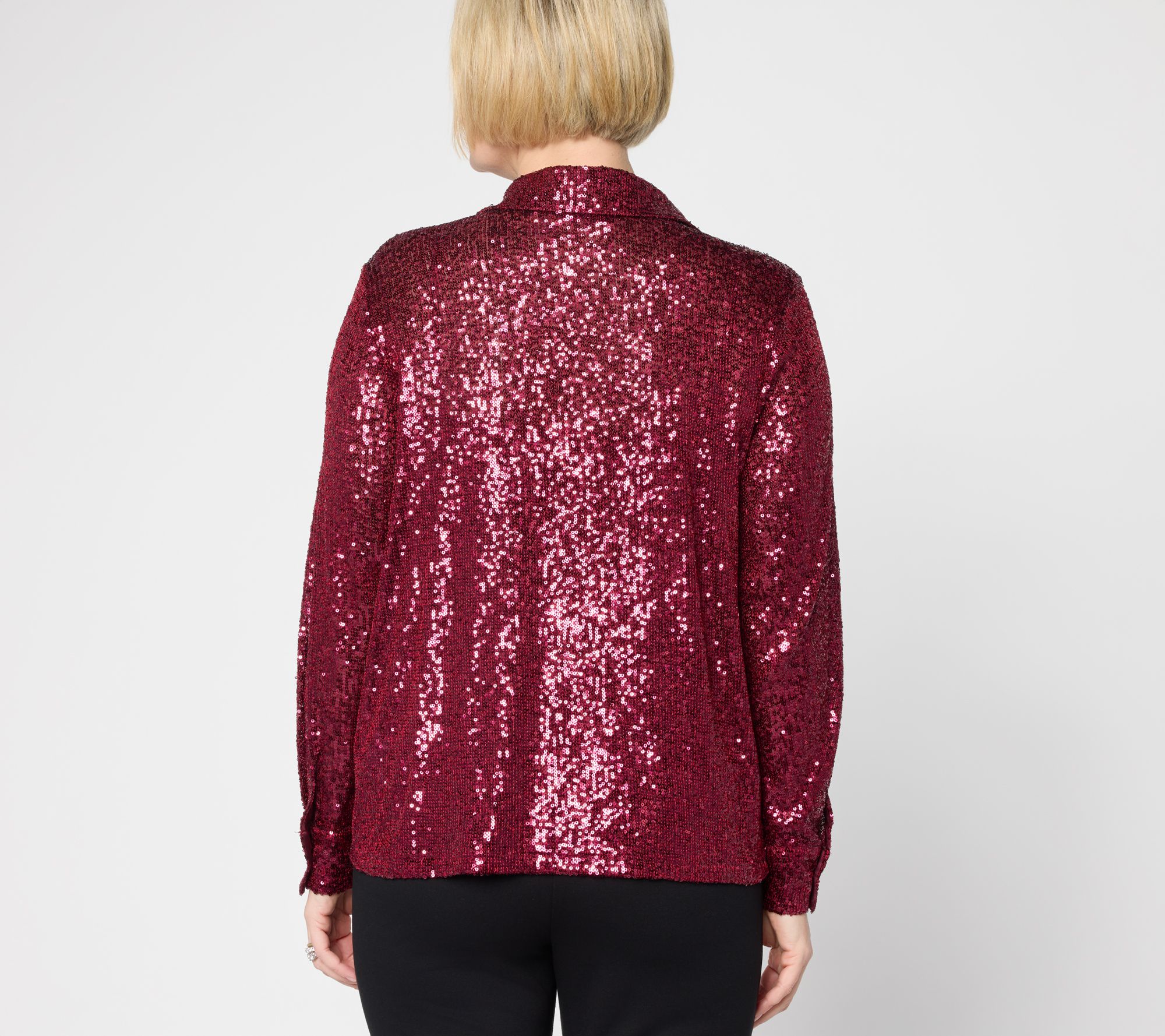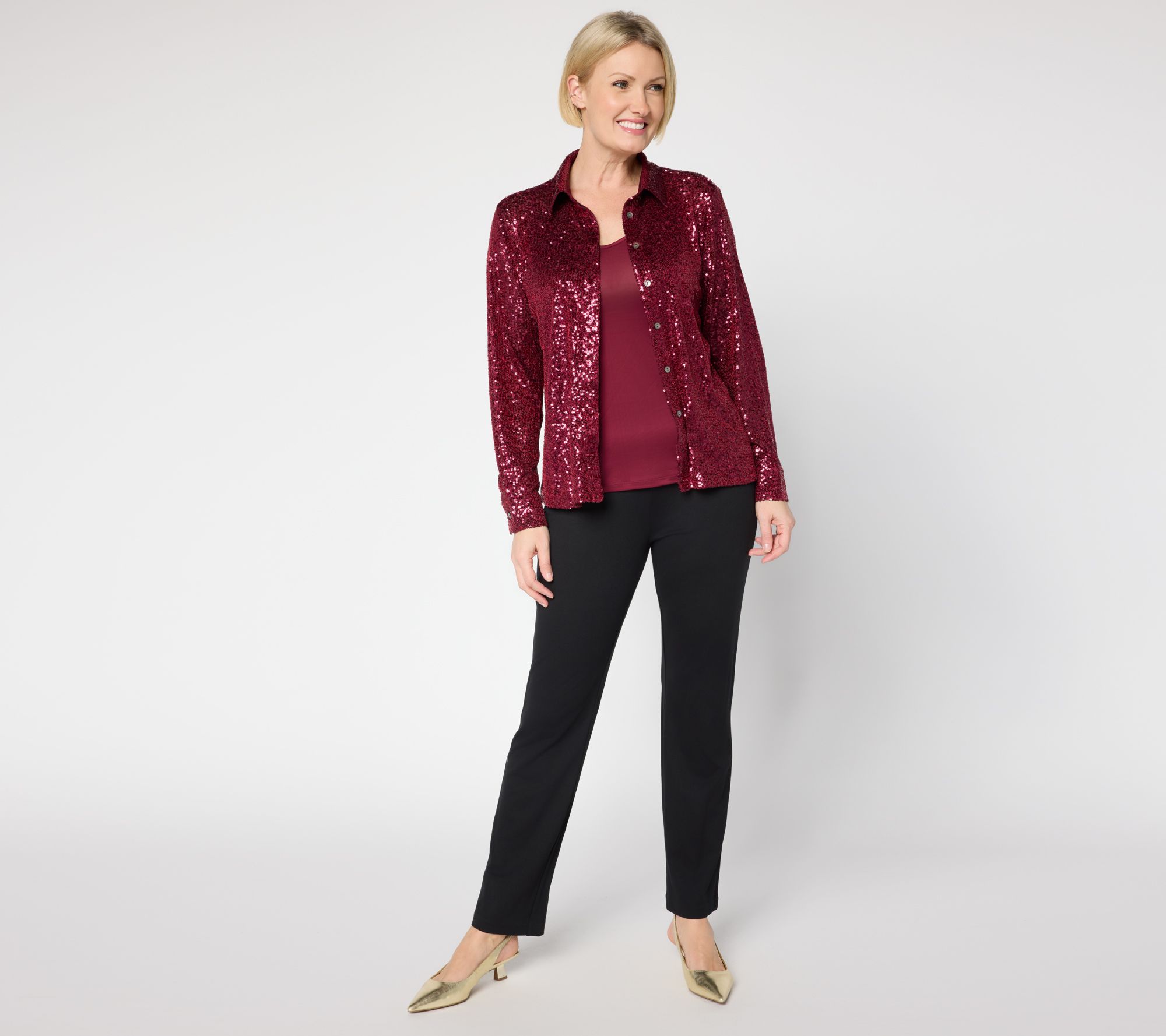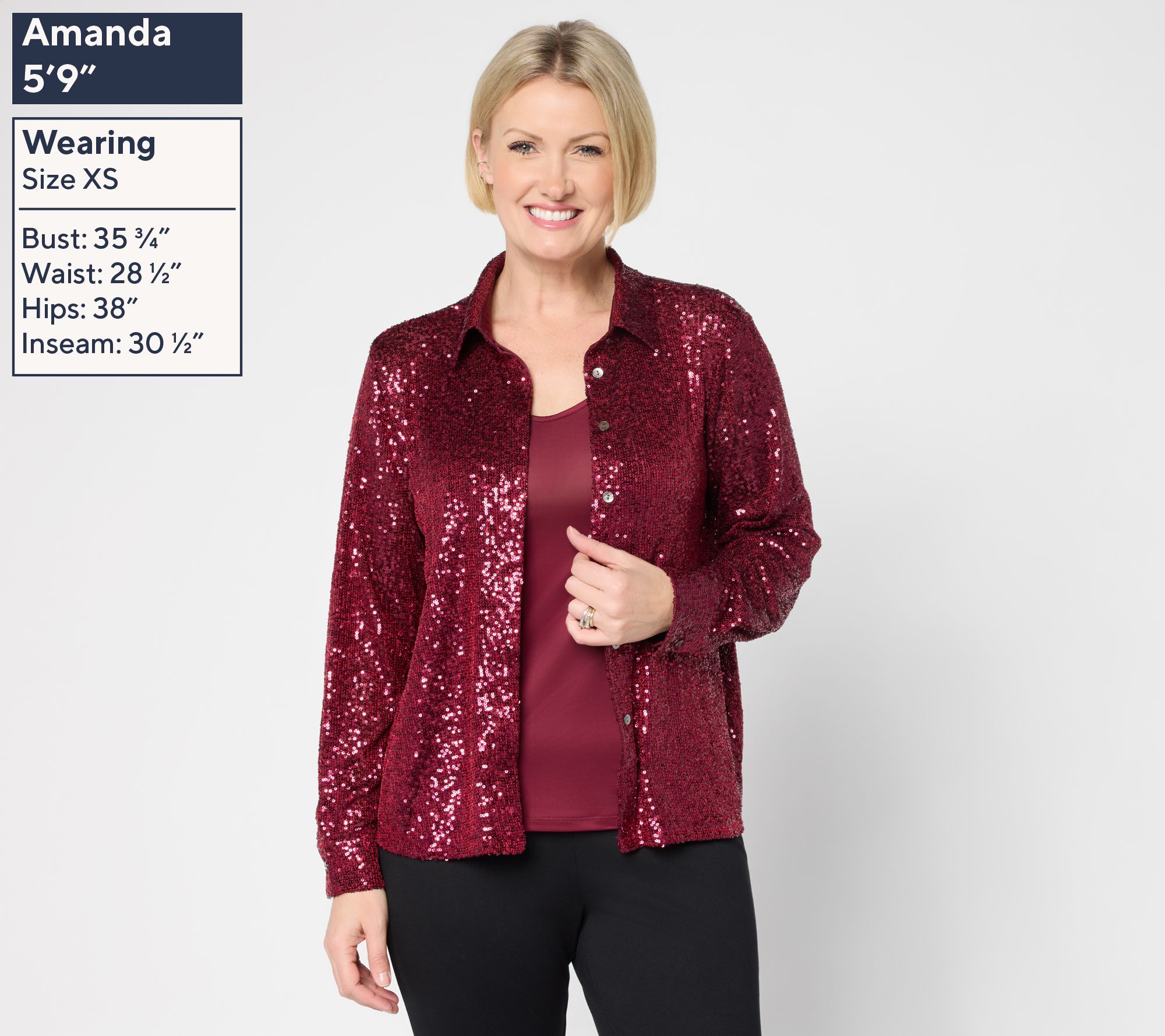 Susan Graver Occasions Sequin Button Front Top with Cami