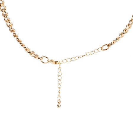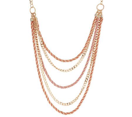 Your main chain. The multiple chains of this ombre necklace make a dramatic statement. The twisted rope chain, colored cords, and curb link chain provide texture and visual interest, while the drape design give it an eye-catching silhouette. From Susan Graver.