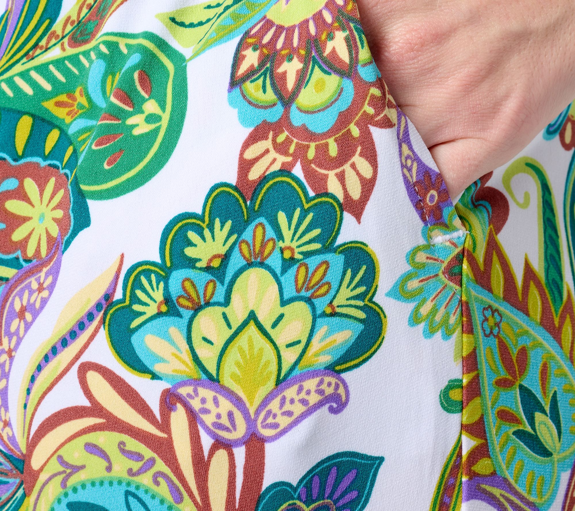 Work the room in these printed pants and have all eyes on you. The wide-leg silhouette gracefully drapes down the leg for an elegant and refined look. From Susan Graver.