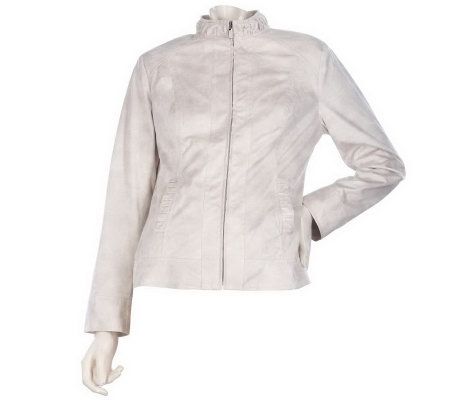 Details make the difference in this pearlized zip-front jacket. Updated and trendy with a mandarin collar and ruching, this jacket is feminine and flattering. From Susan Graver.