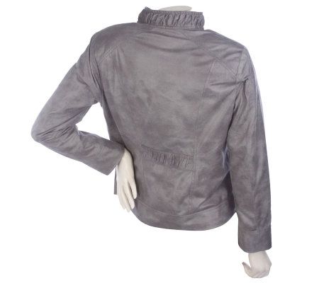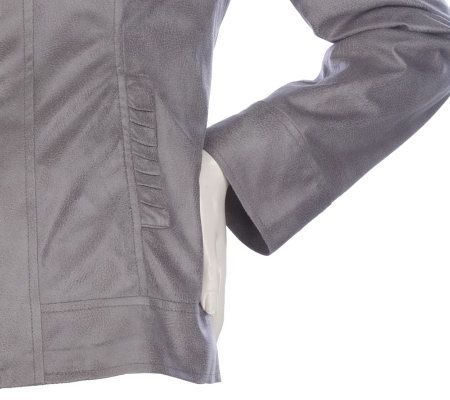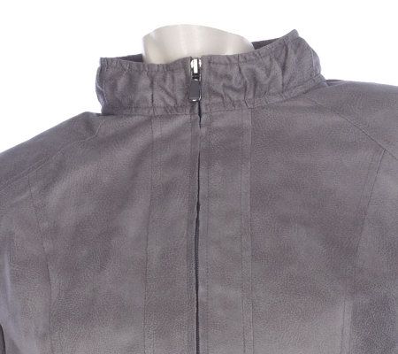 Susan Graver Pearlized Zip Front Jacket with Ruched Details