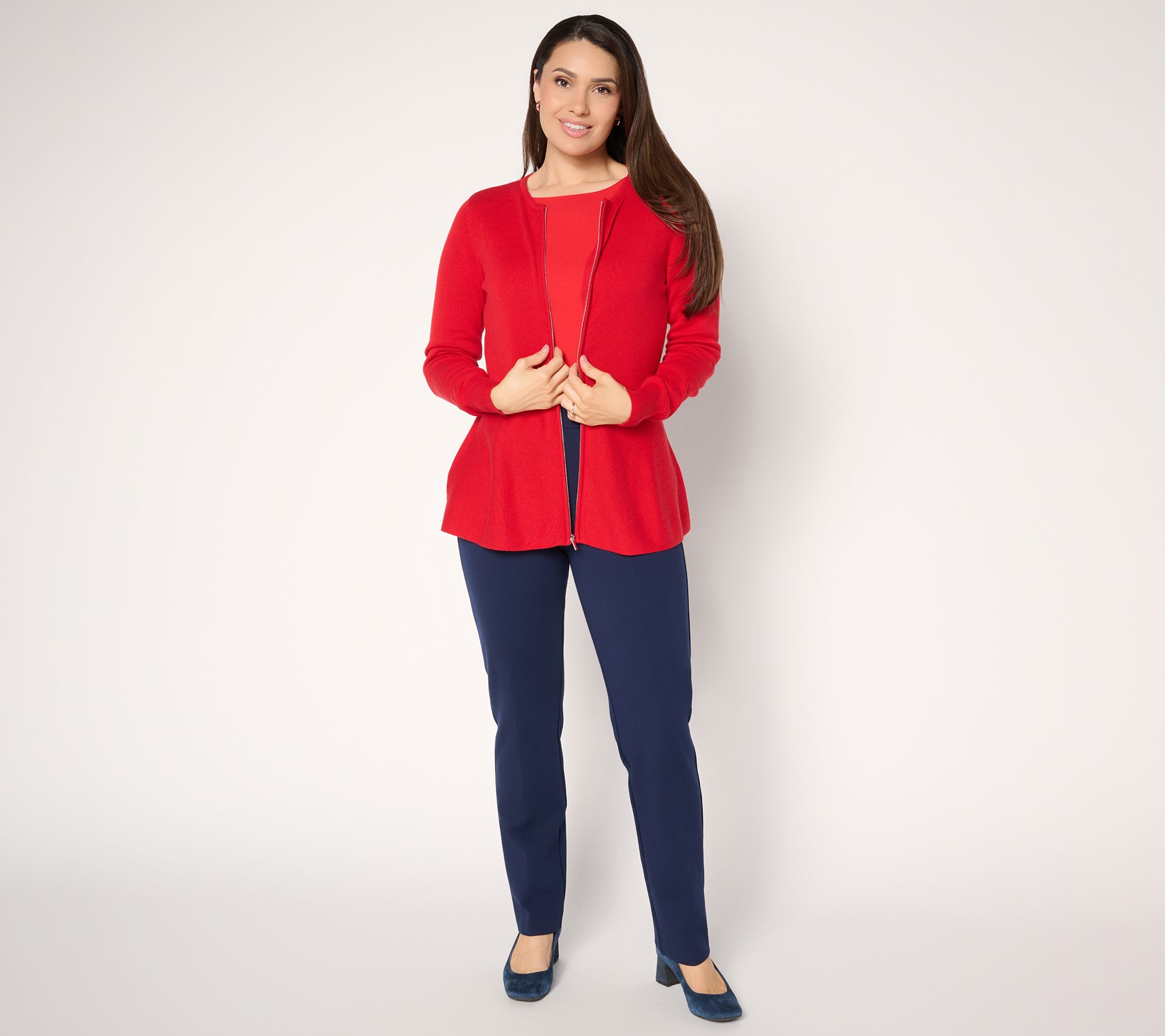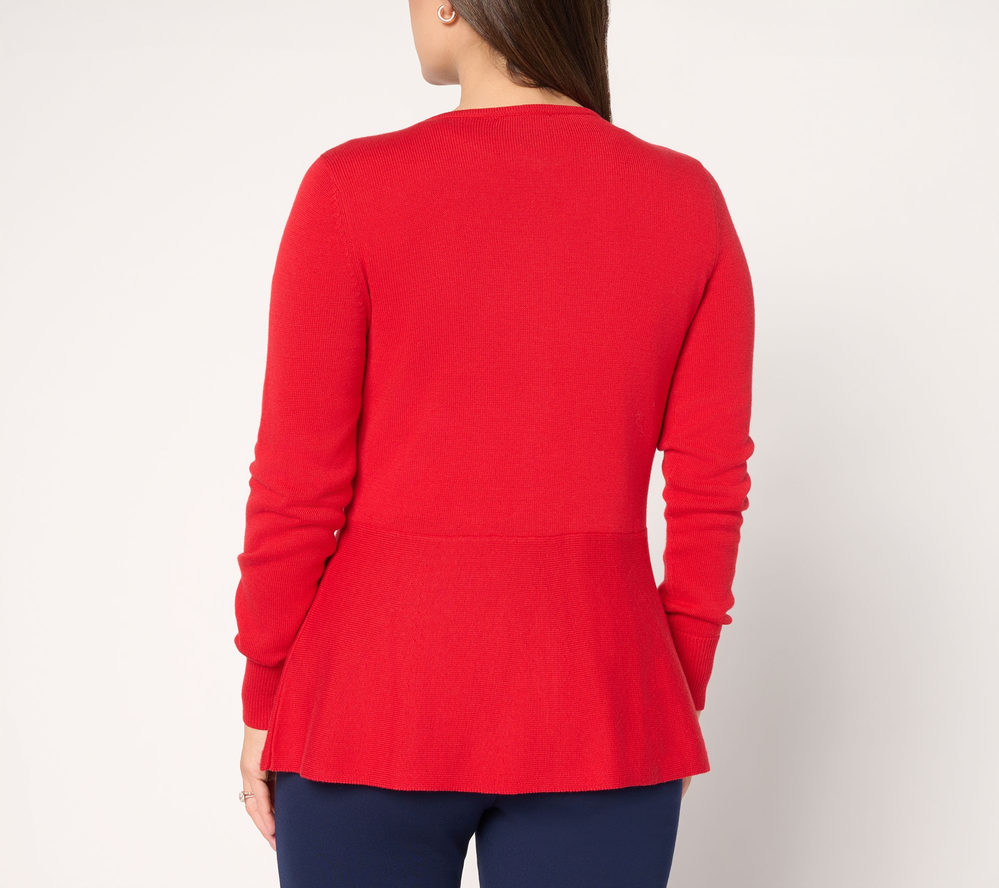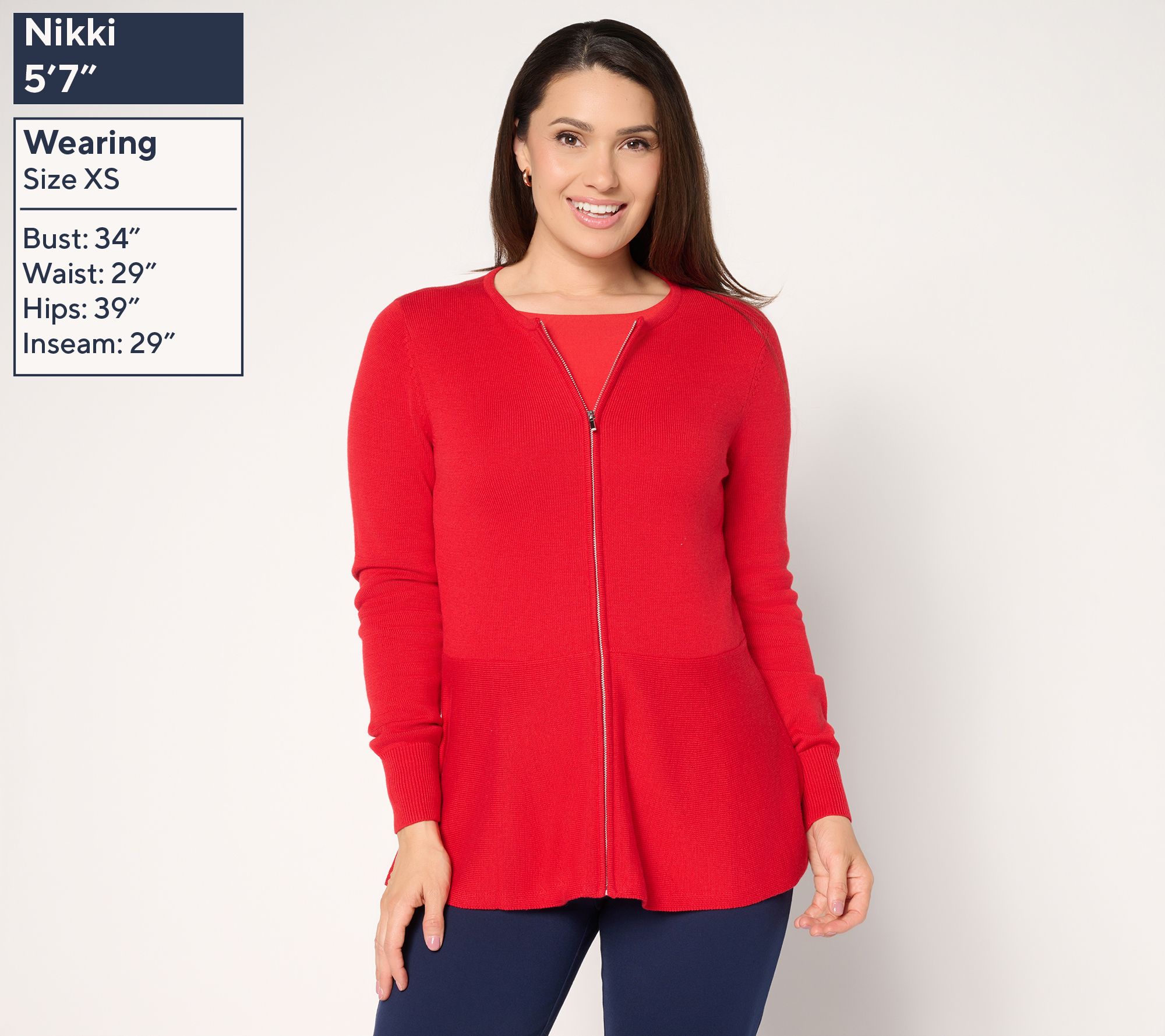 For a weekend lunch or weekday errands, this peplum sweater jacket brings polish to everyday style. The zip-front closure and waist seam shape a flattering silhouette, while ribbed sleeve cuffs add a tailored finish. Pair the graceful layer with jeans or trousers for versatile, effortless looks. From Susan Graver.