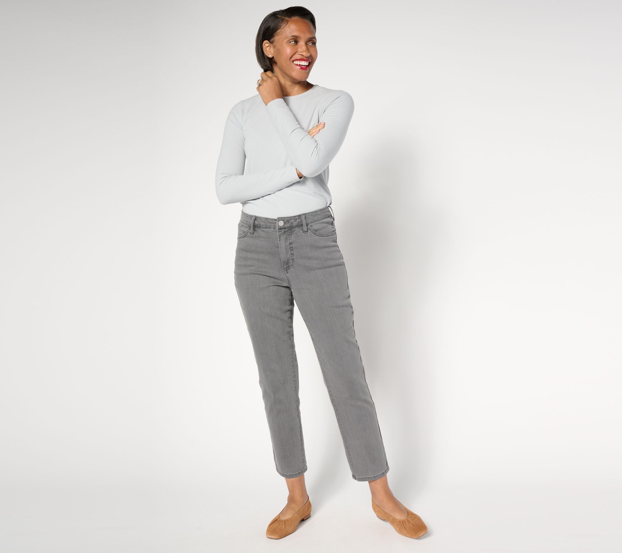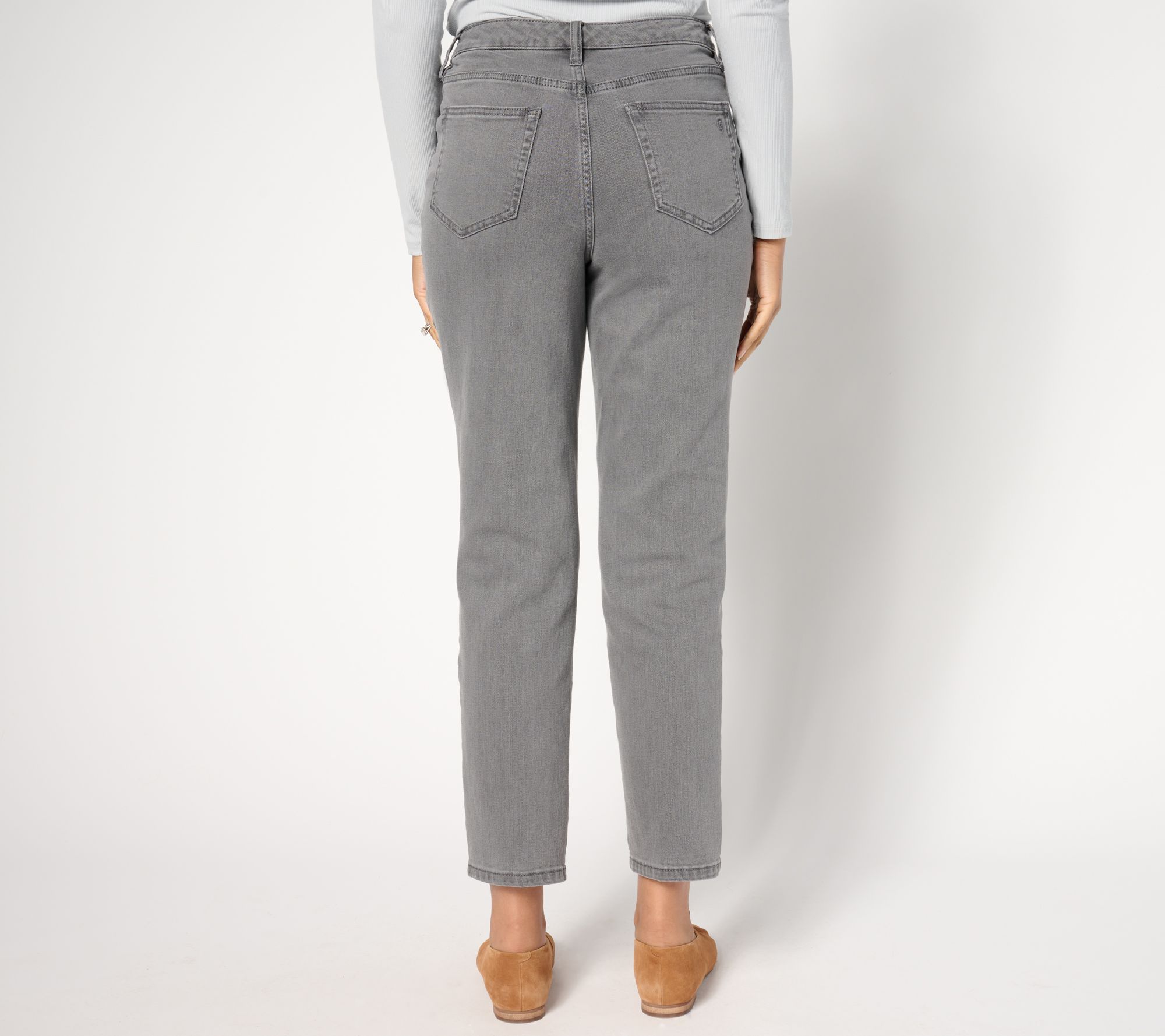 Susan Graver Petite Ankle Length Tapered Jean - Black or Grey