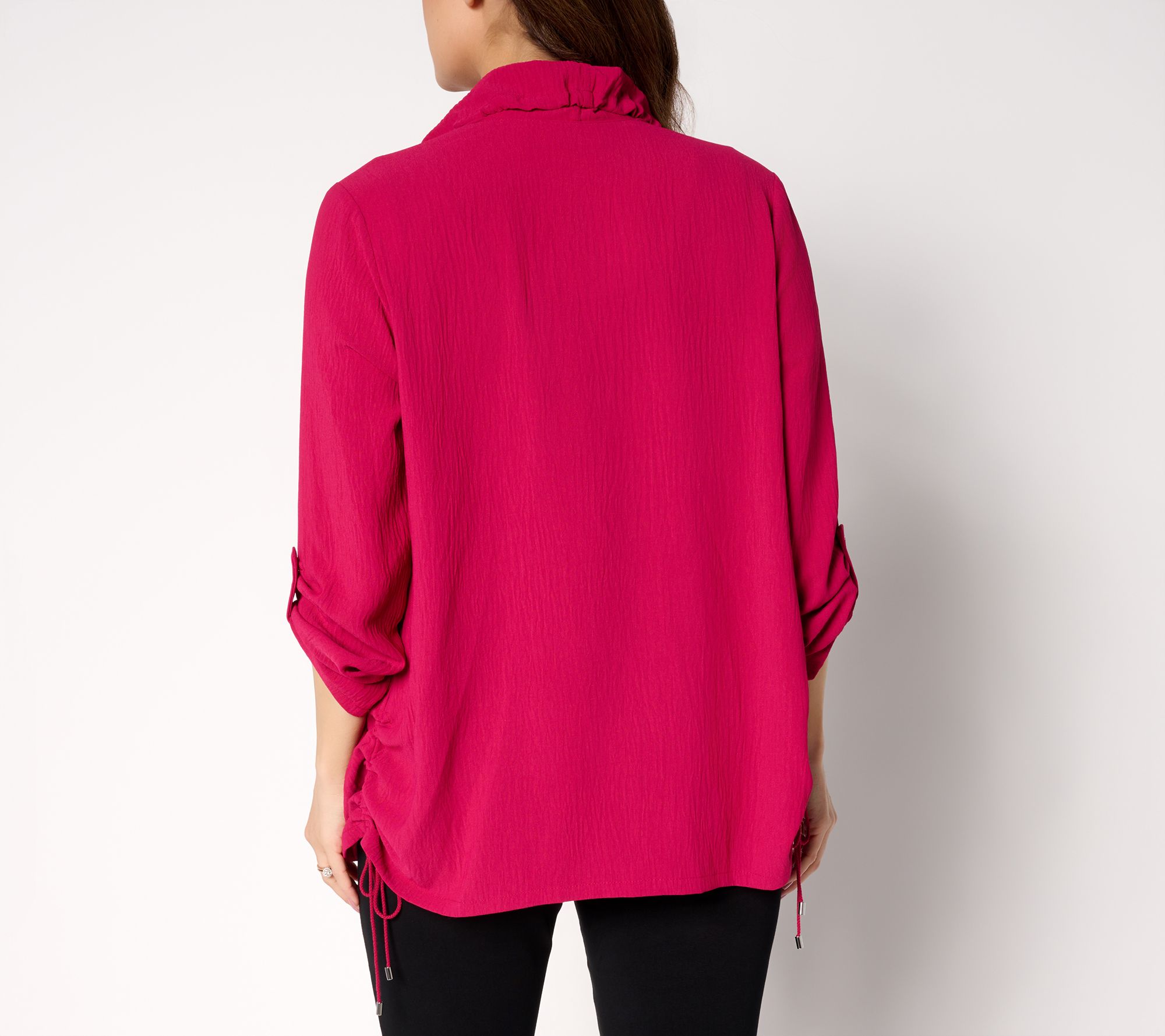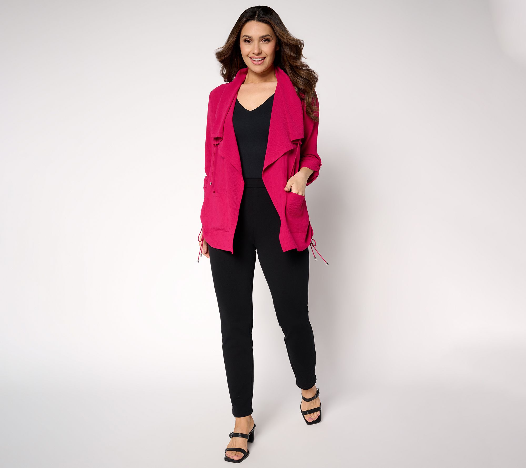 Make your everyday looks feel a little more special with this crinkled woven cardigan. The drape-front silhouette and drawstring details let you adjust for the vibe (and fit) you're after. It's a versatile piece you'll reach for when you want style with just the right amount of ease. From Susan Graver.