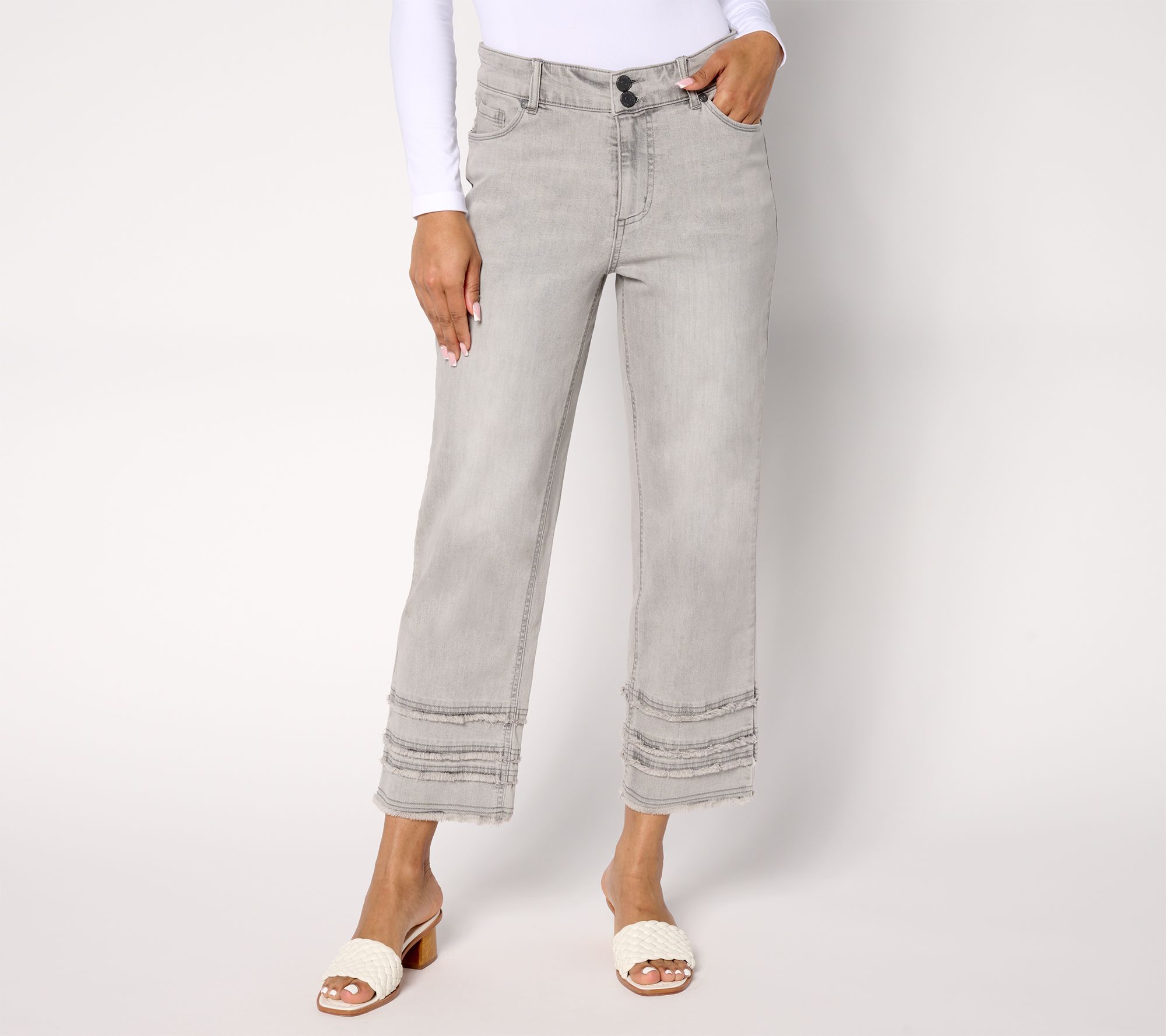 Out from behind its boho beginnings steps the casually chic and effortlessly cool frayed jean. Still as laid-back as ever, this trend-proof look has stood the test of time, only to emerge more fierce, fashionable, and socially acceptable thanks to a fresh iteration by designer Susan Graver. Now we can all experience those cool-girl vibes. From Susan Graver.