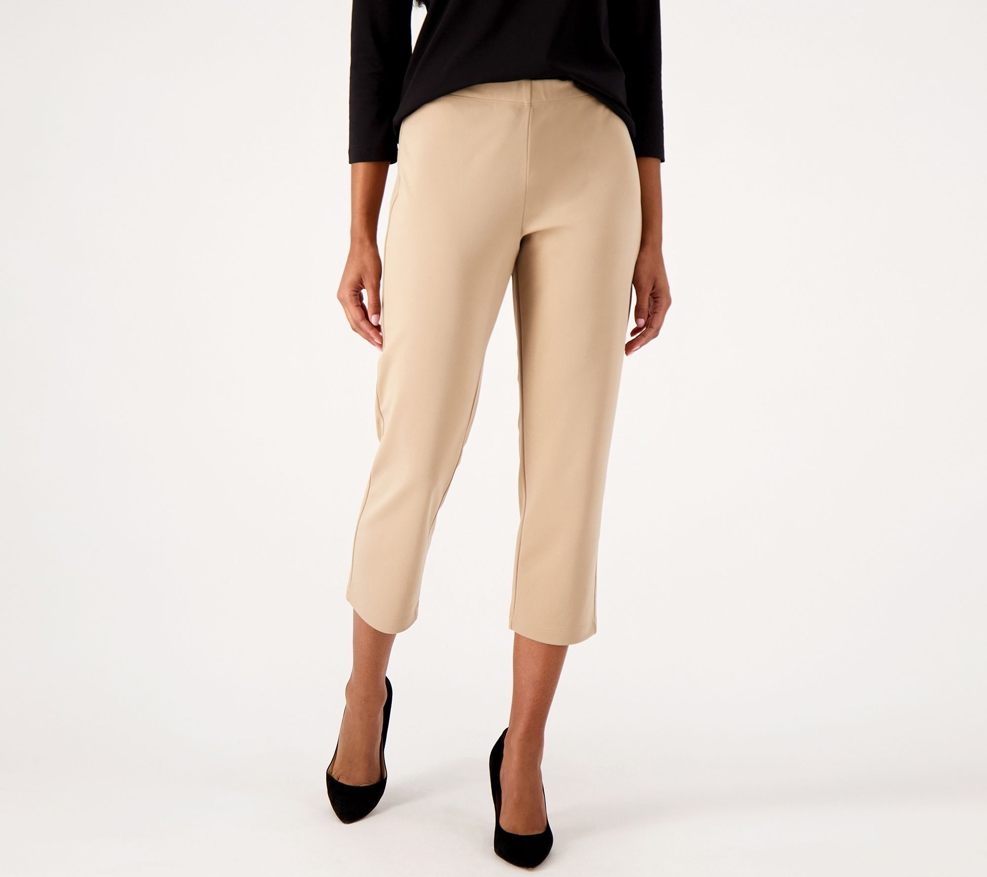 Susan Graver Petite Milano Knit Pull-On Straight Leg Crop Pants