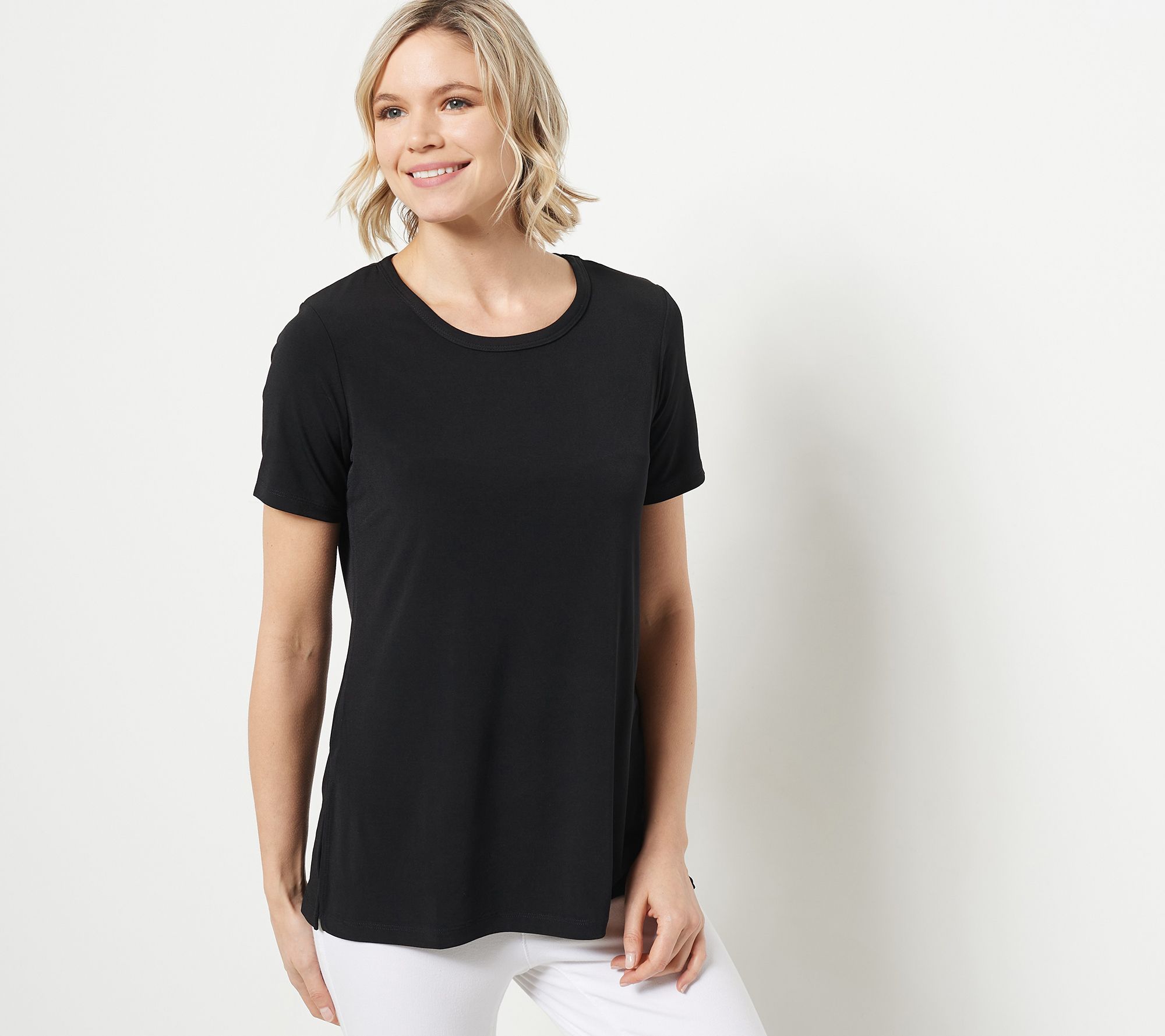 Susan Graver Petite Modern Essentials Liquid Knit Crew-Neck Tunic