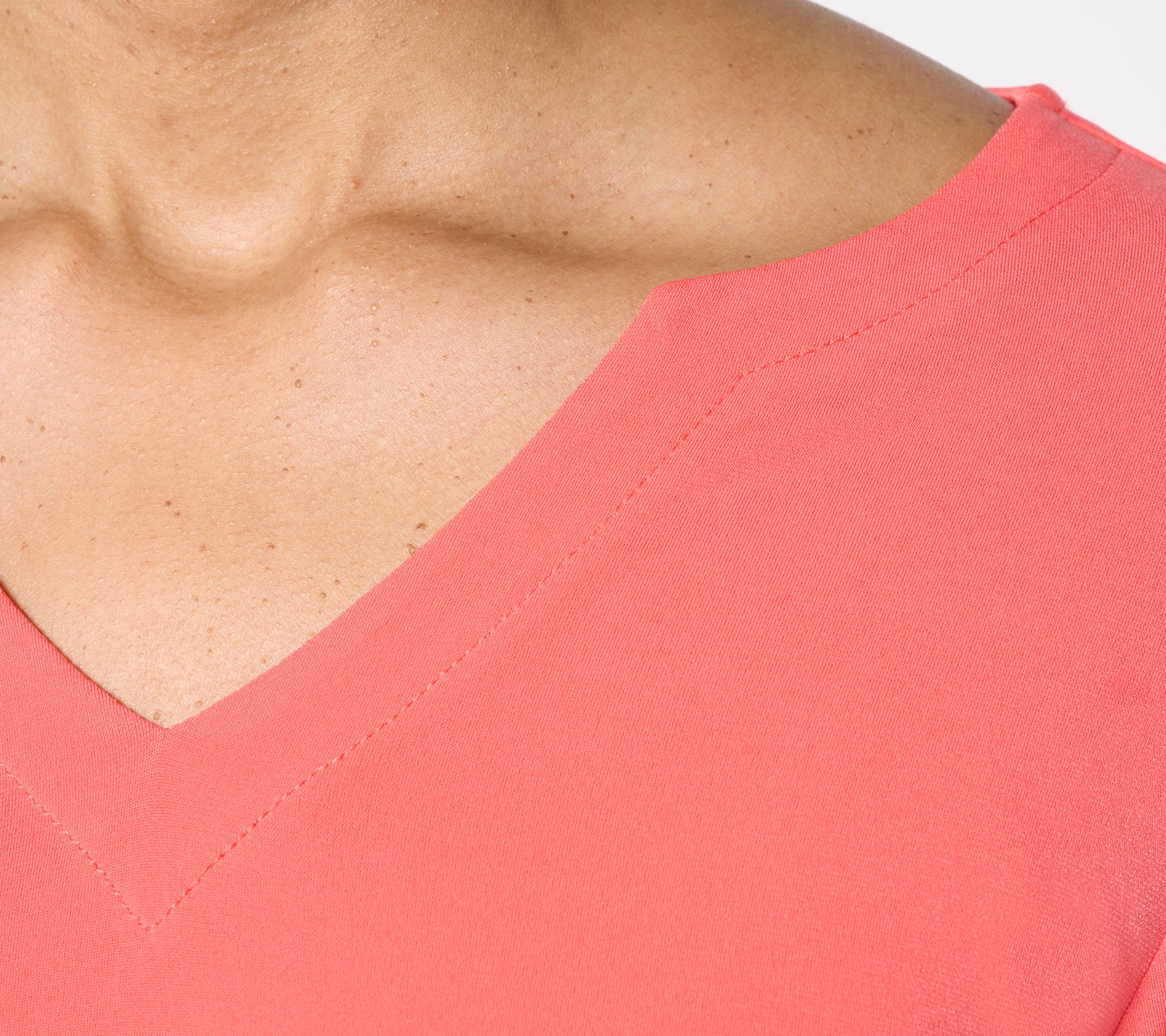 It's not just an essential -- it's a modern essential from Susan Graver. This wardrobe-builder sets the tone for your personal style, going well beyond basic. Featuring a flattering split V-shaped neckline (that frames the face so beautifully!) and crafted in smooth and graceful Liquid Knit®, your new go-to is updated and ready for anything the day may bring. From Susan Graver.