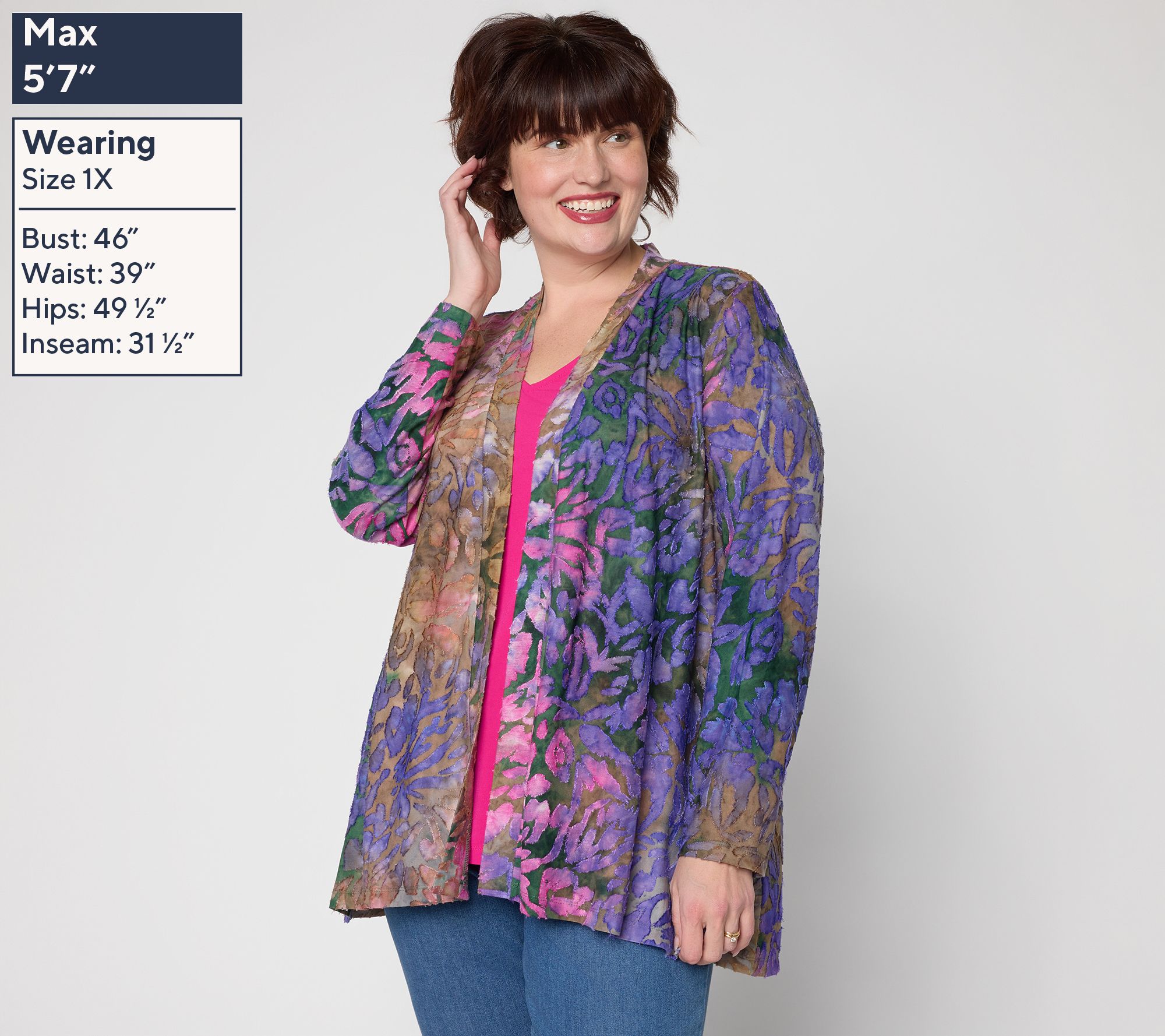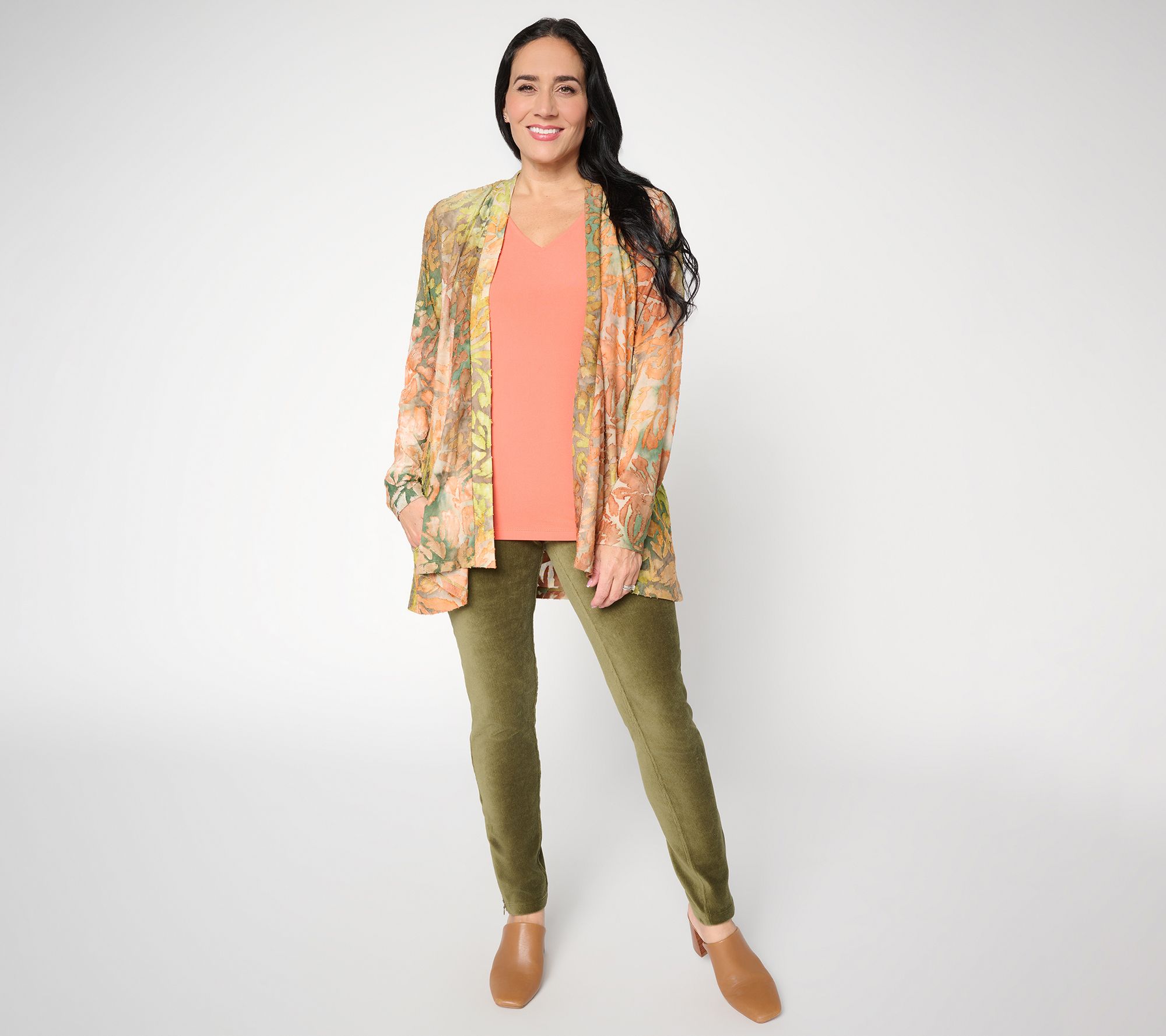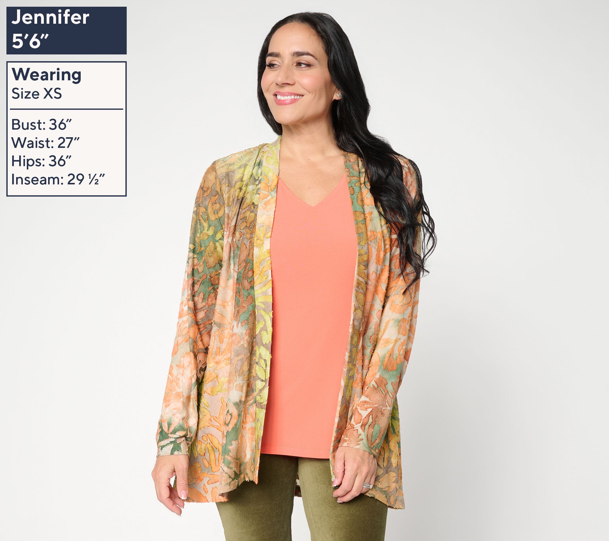 When one half of your outfit is as easy and pretty as this colorful burnout cardi and solid tank set, you'll regain time for getting your makeup just right, texting the group chat, or (gasp) relaxing before the day's big event. From Susan Graver.
