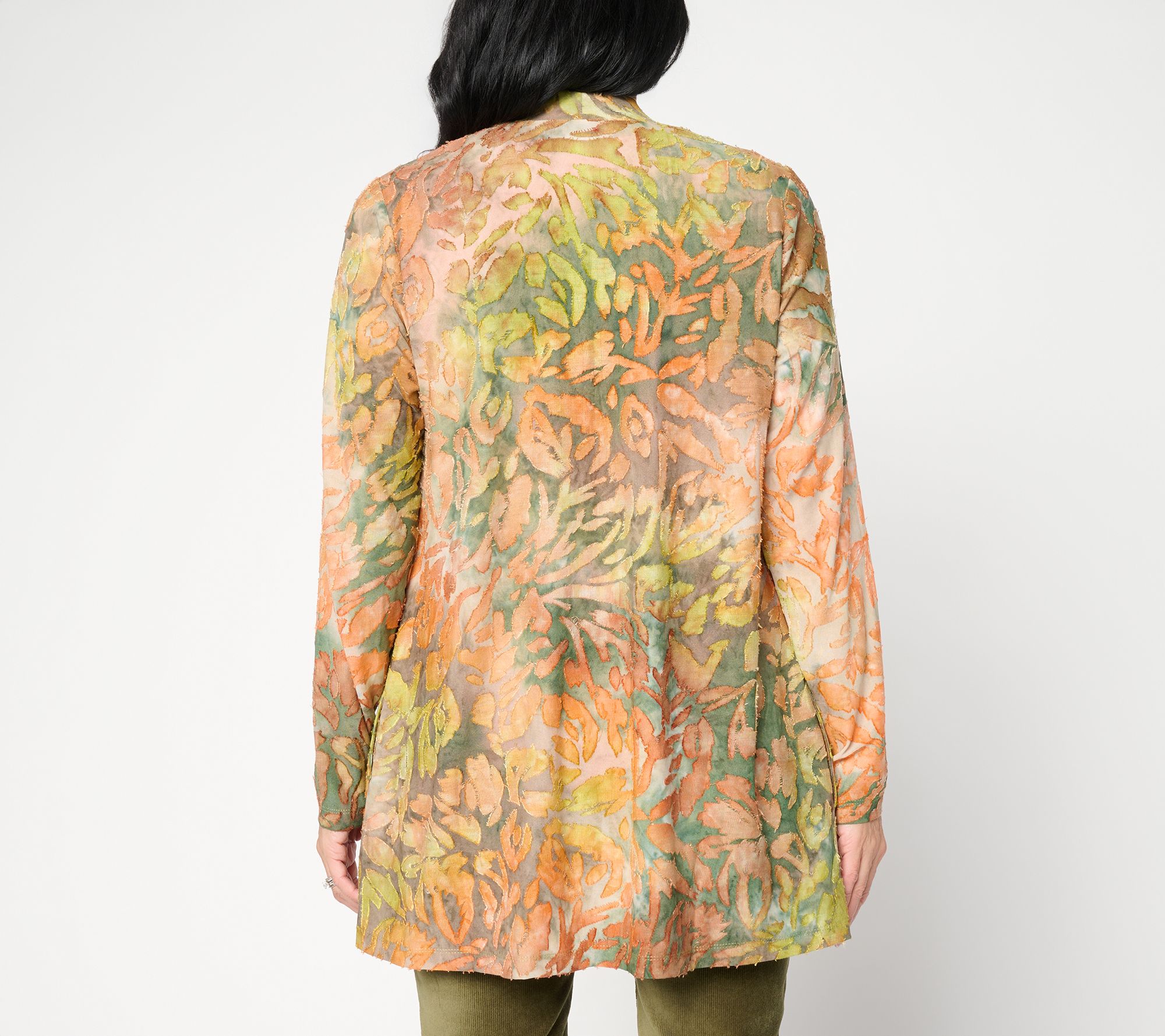 Cardigan Features: sheer burnout print, long sleeves, open front, hi-low hem