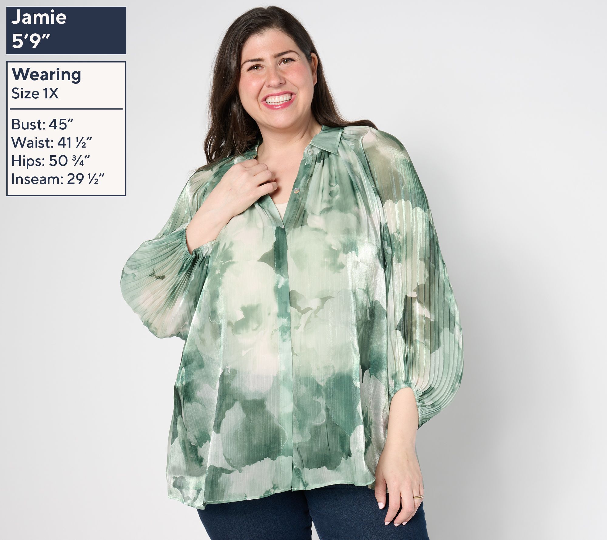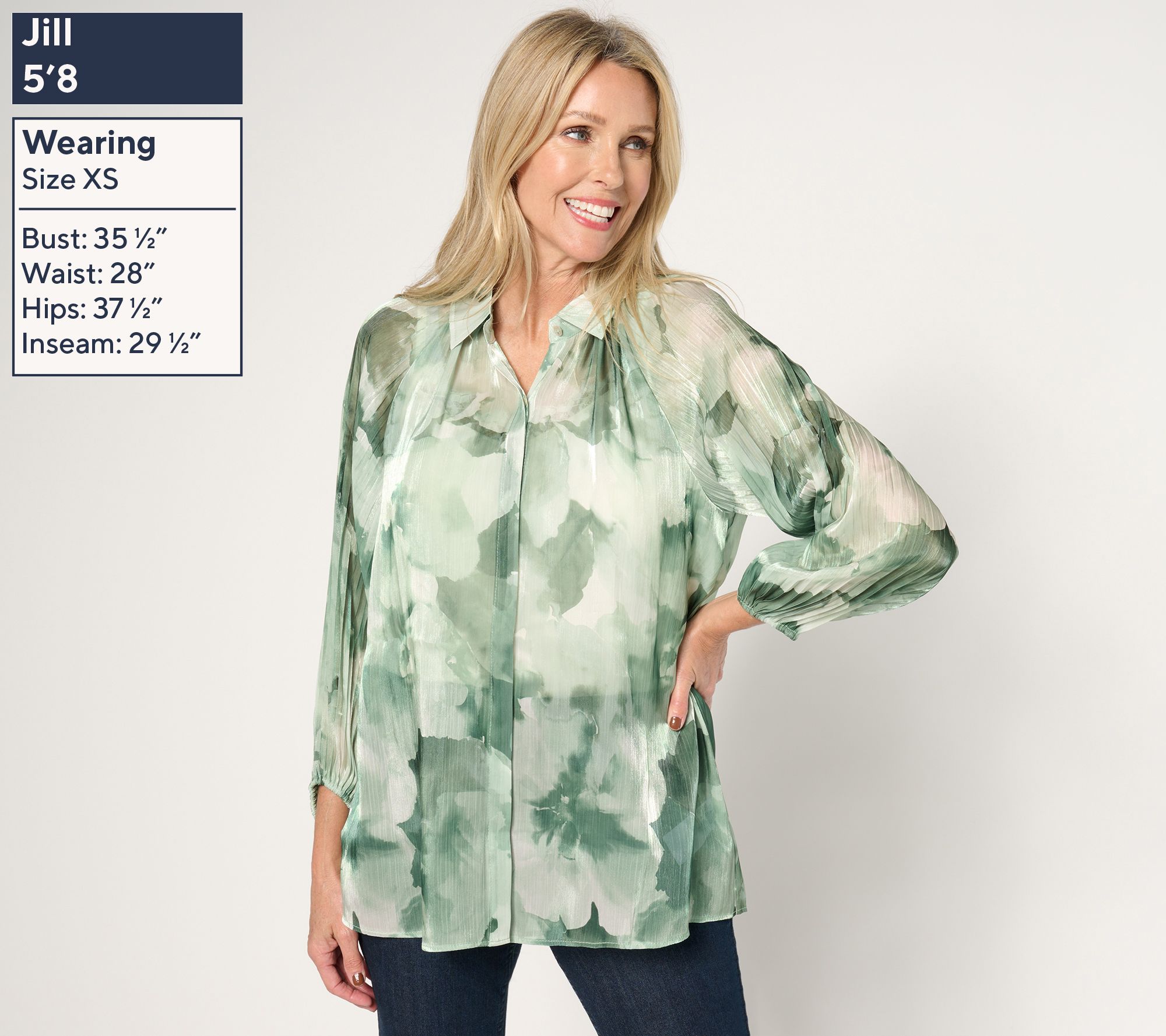 A little bit chic, a little bit fun -- this printed sheer tunic is the best of all worlds. Pleated sleeves are joined by an elastic-encased sleeve opening to create a distinctive look. From Susan Graver.
