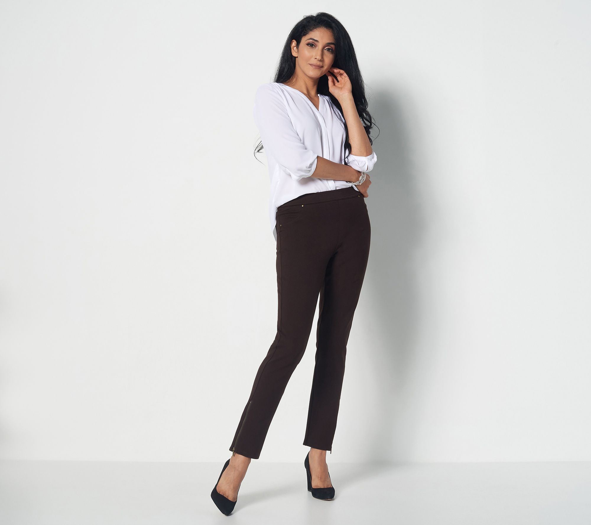 These pants seriously work for it. With wear-anywhere leisure, the fruits of their labor result in you looking and feeling good. From Susan Graver.