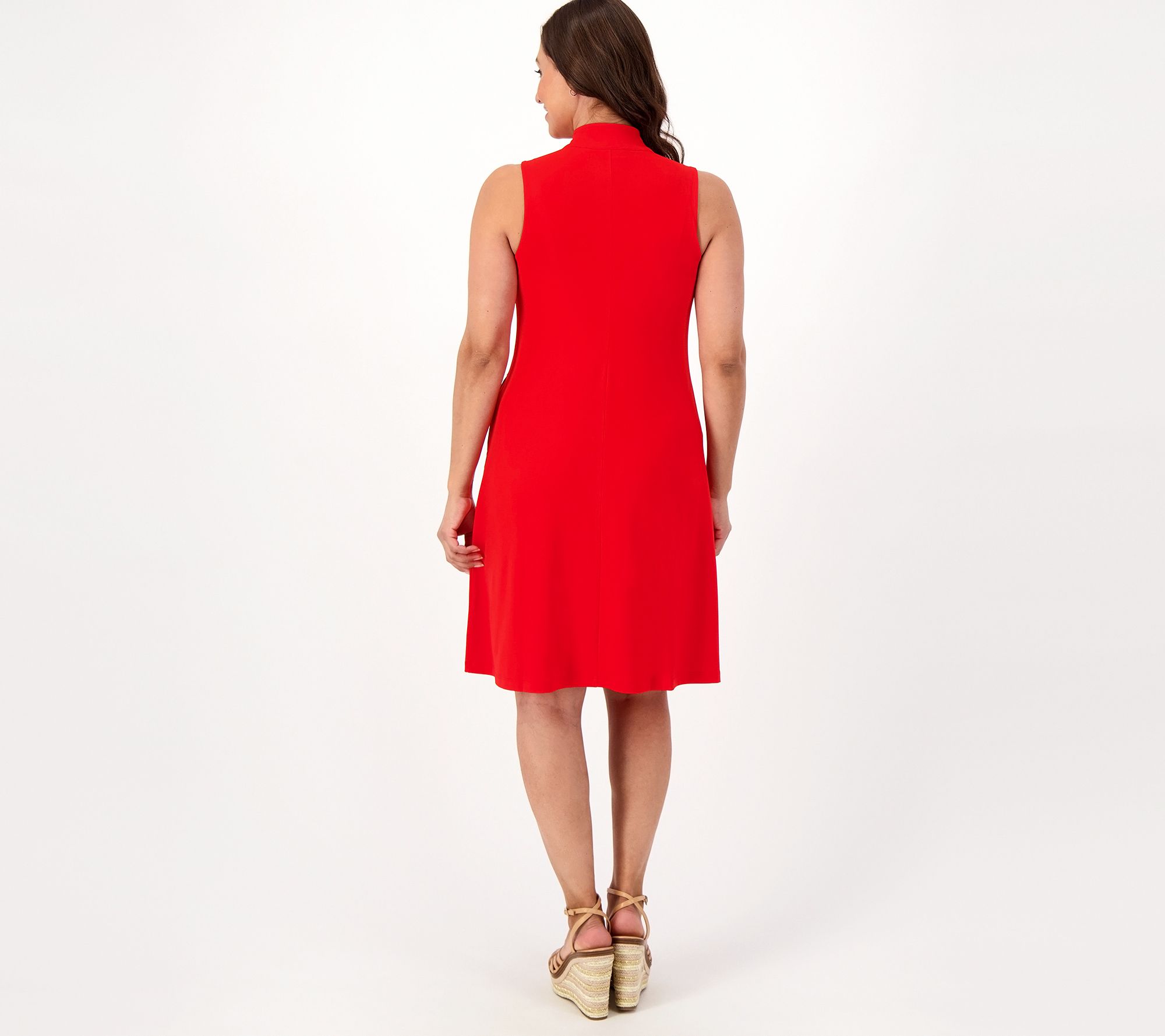 • Features: mock neck, sleeveless, A-line, side seam pockets, straight hemline