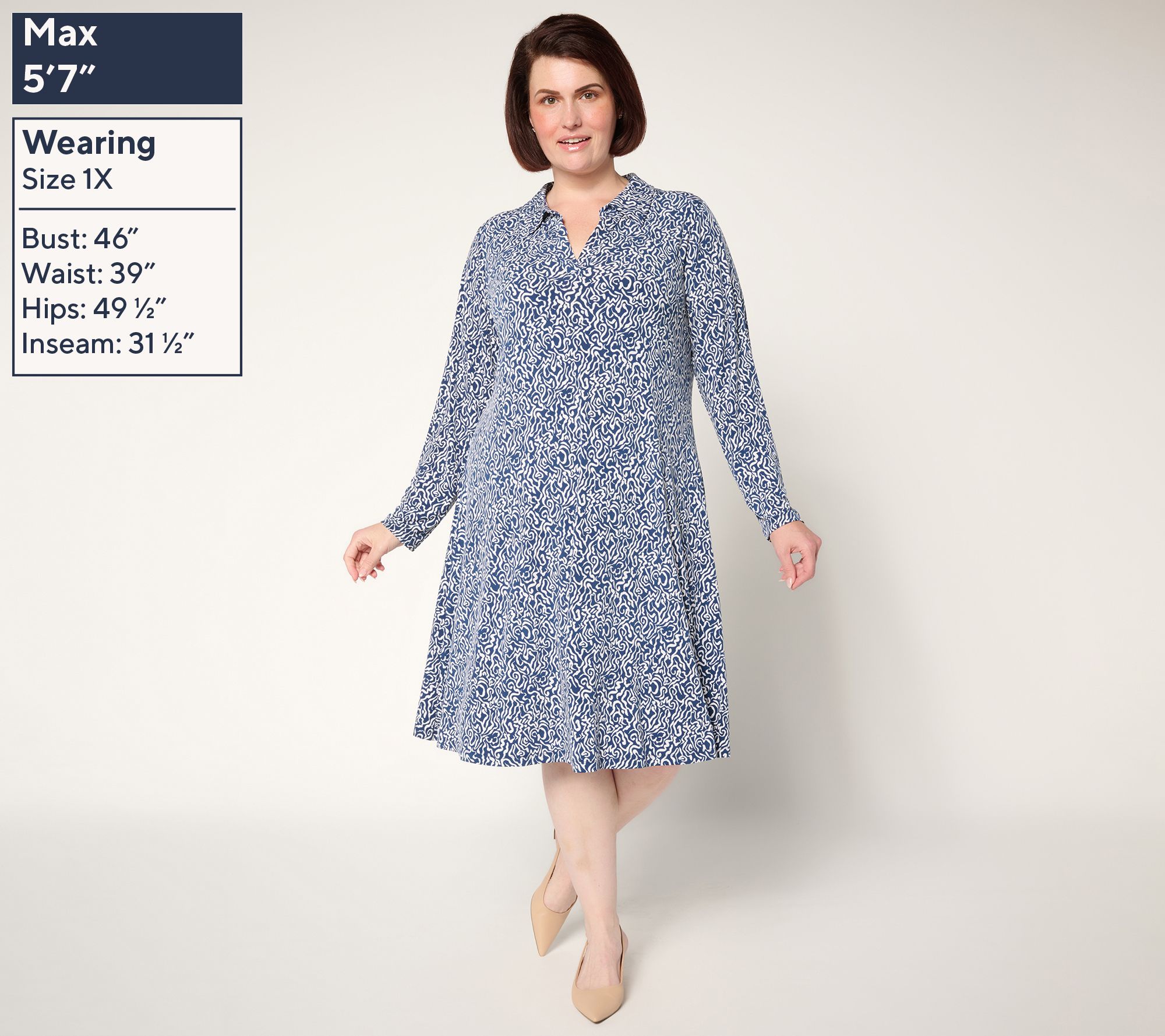 Susan Graver Petite Printed Liquid Knit Collared Midi Dress