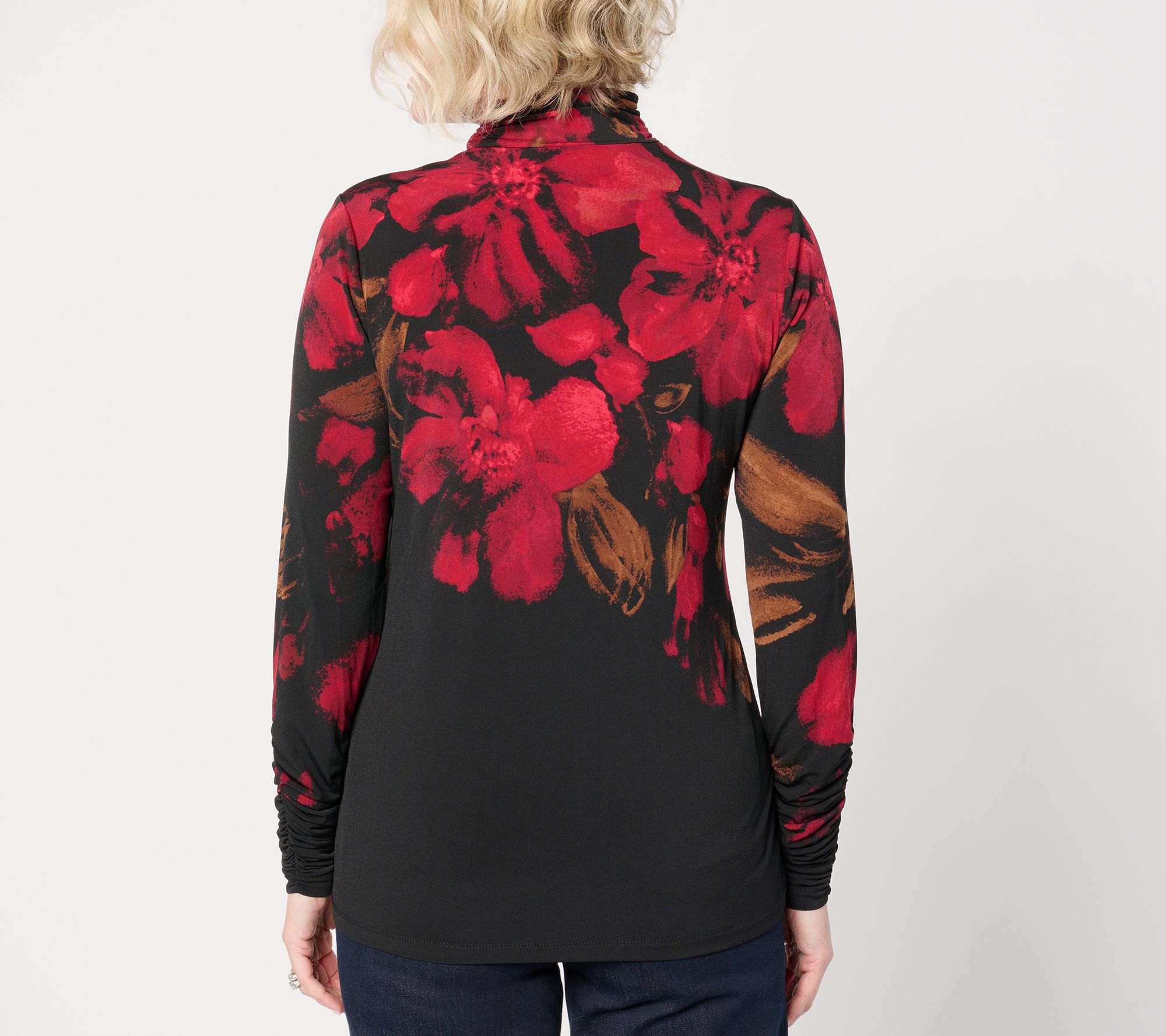 Bring the wow to the blazers, skirts, and trousers in your closet with this mesh mock neck top in a charming print. With sweetly ruched details, it feels appropriately stylish (and celebratory) for multiple dates on the calendar. From Susan Graver.