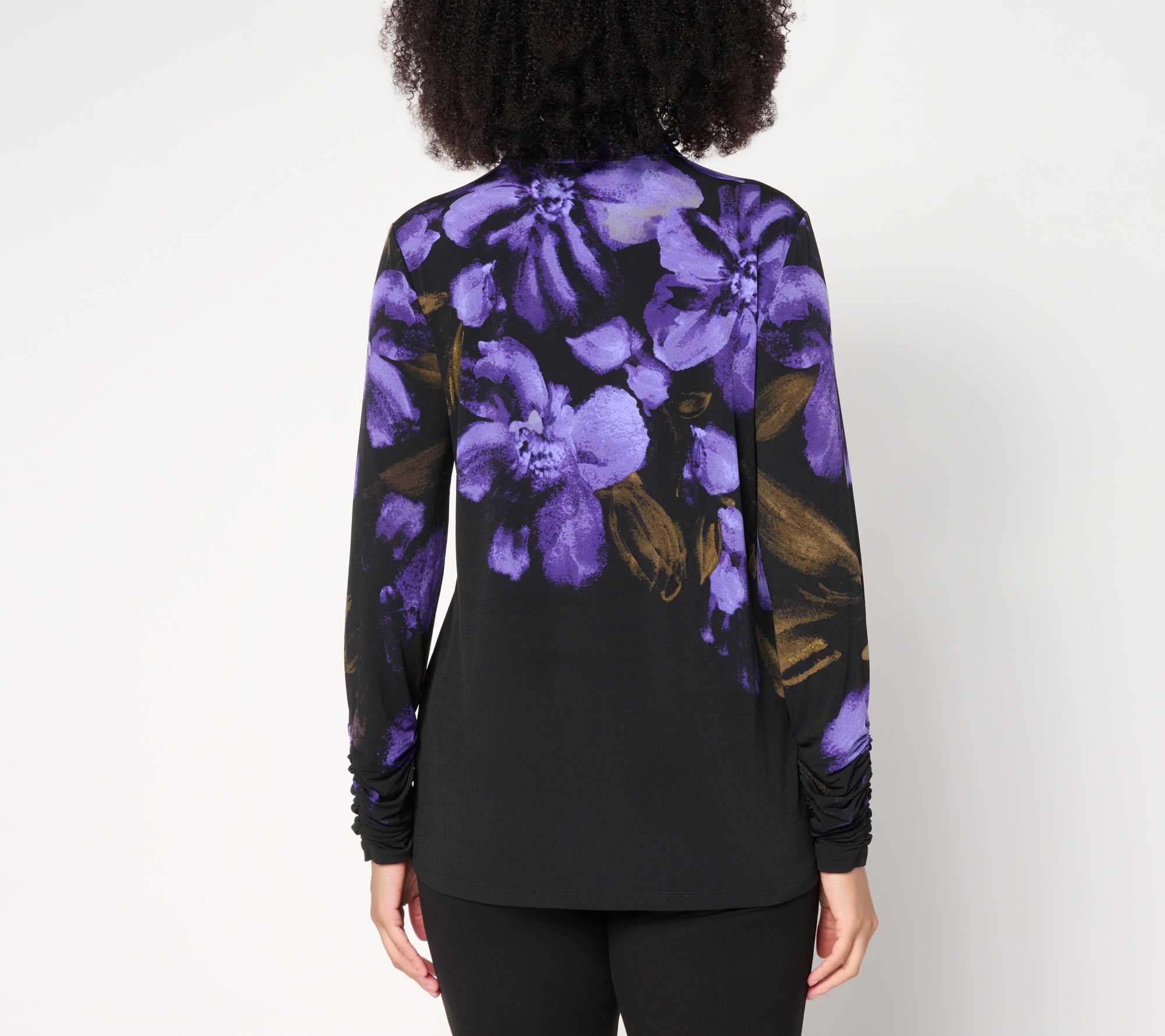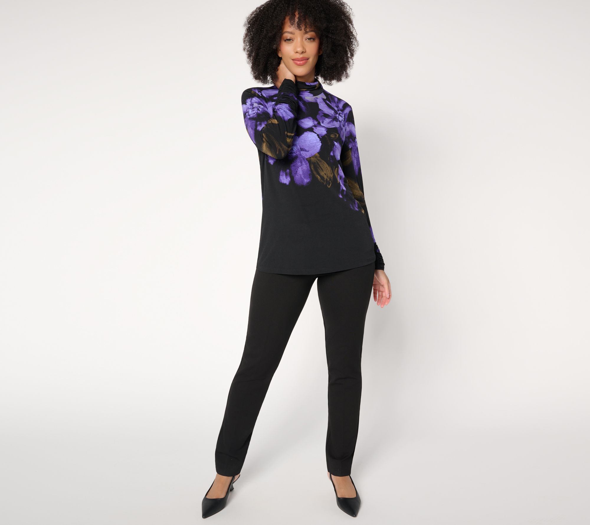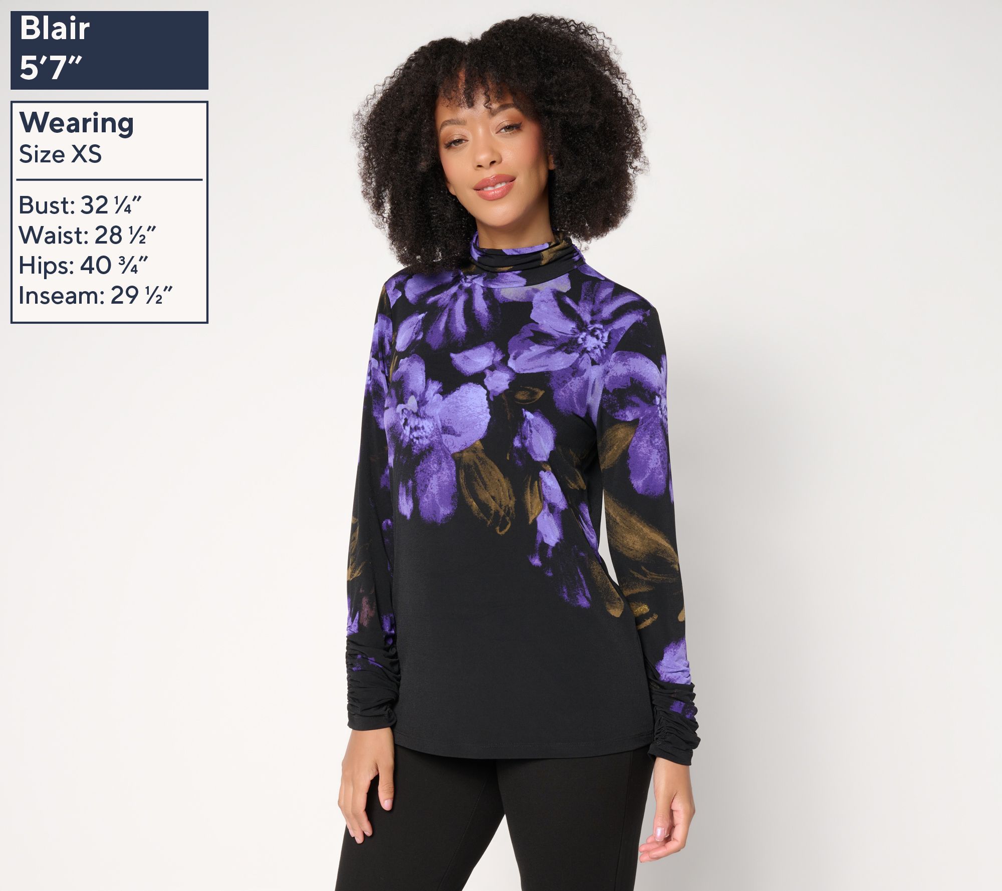 Susan Graver Petite Printed Liquid Knit Mock Neck Long Sleeve Top