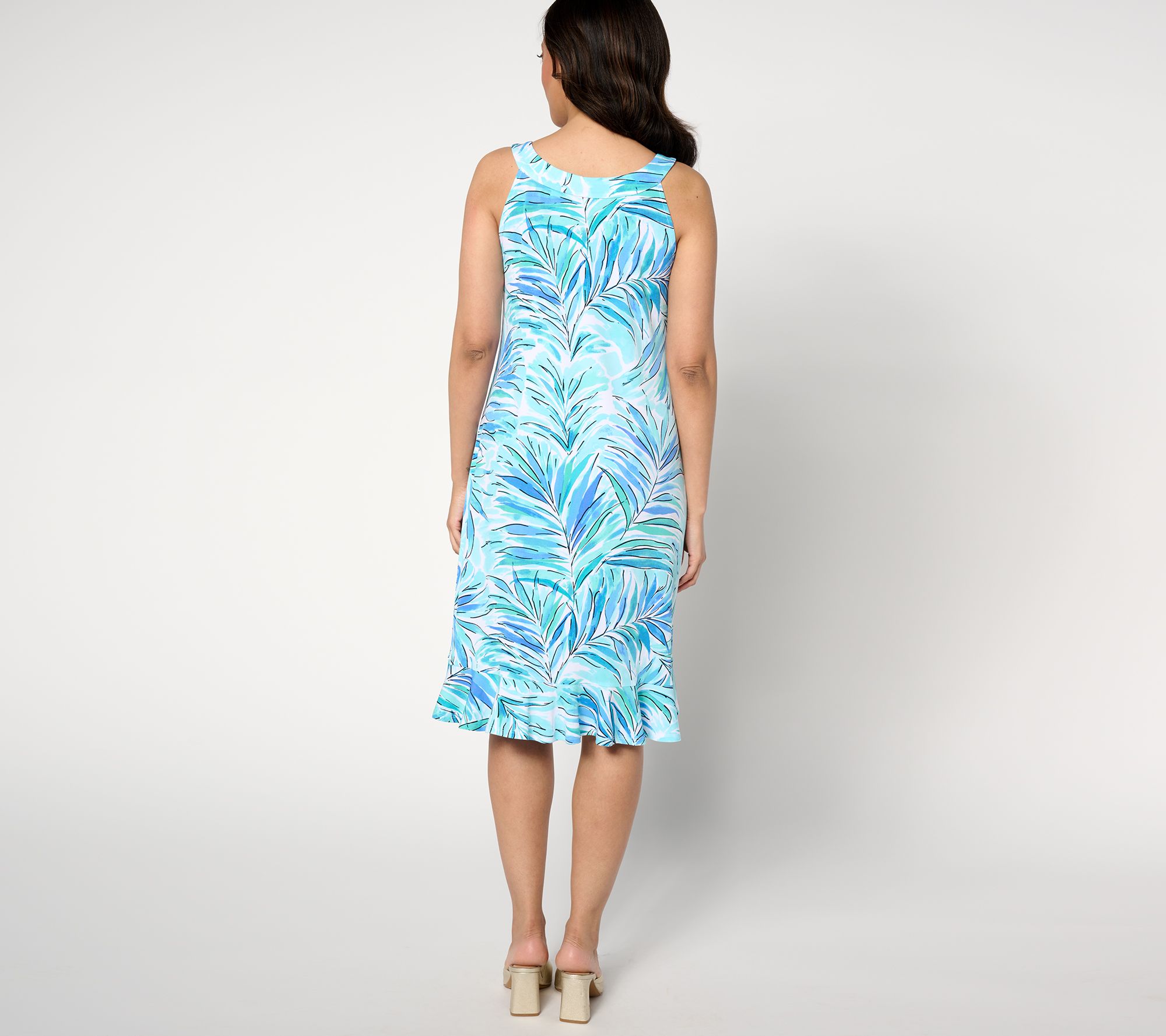 Permission to strike a pose as often as you'd like. This flattering flounce dress will have you feeling feminine and flirty for every look-at-me-moment on your summer agenda. Add in a twirl whenever possible to show off the ruffled hem! From Susan Graver.