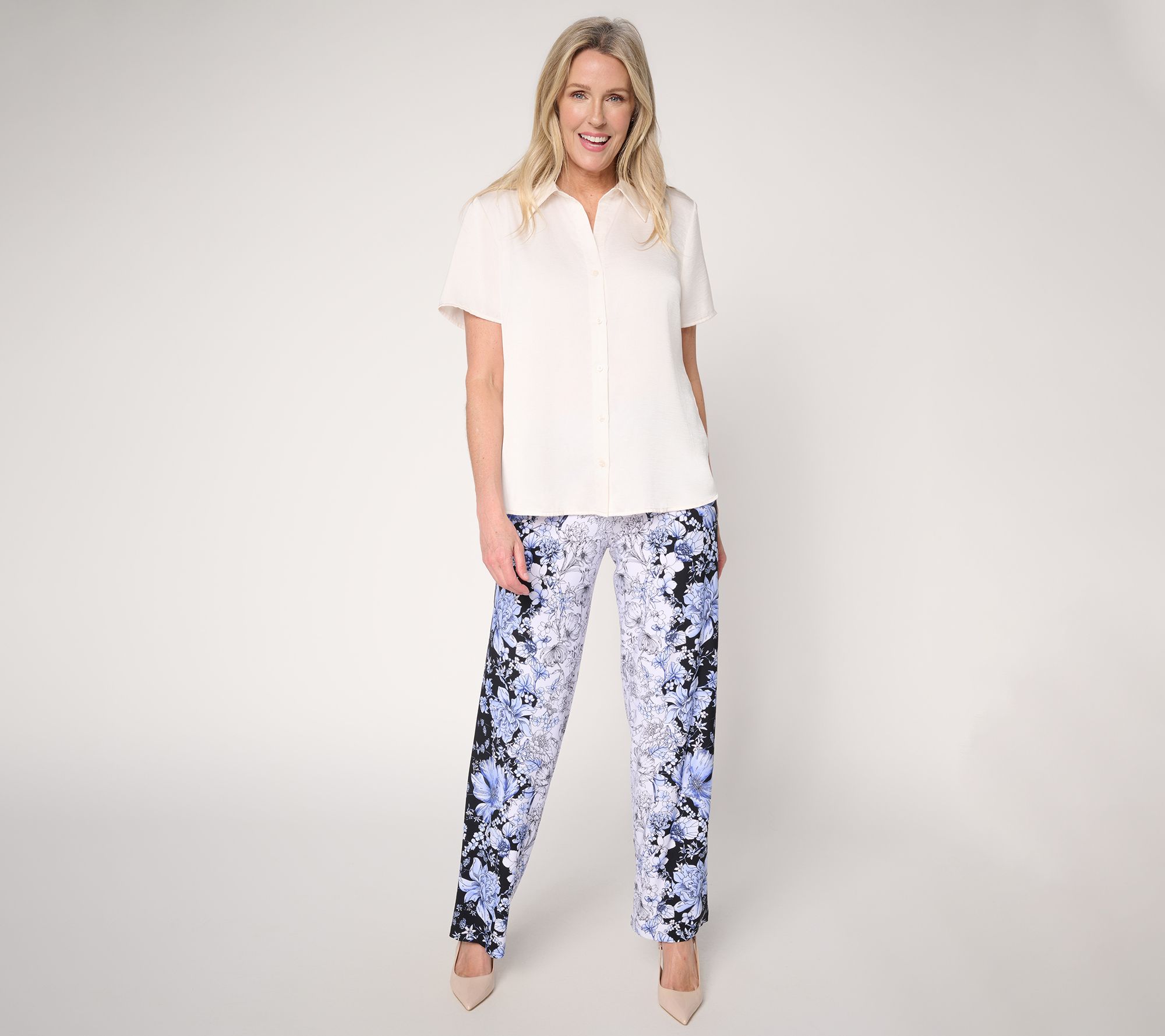 From work meetings to weekend activities, these printed Liquid Knit® wide-leg pants offer a chic way to stay comfortable all day. The pull-on style, smooth finished waist, and artistic placed print make them a standout paired with sleek tops and flats or dressed up with a blazer. From Susan Graver.