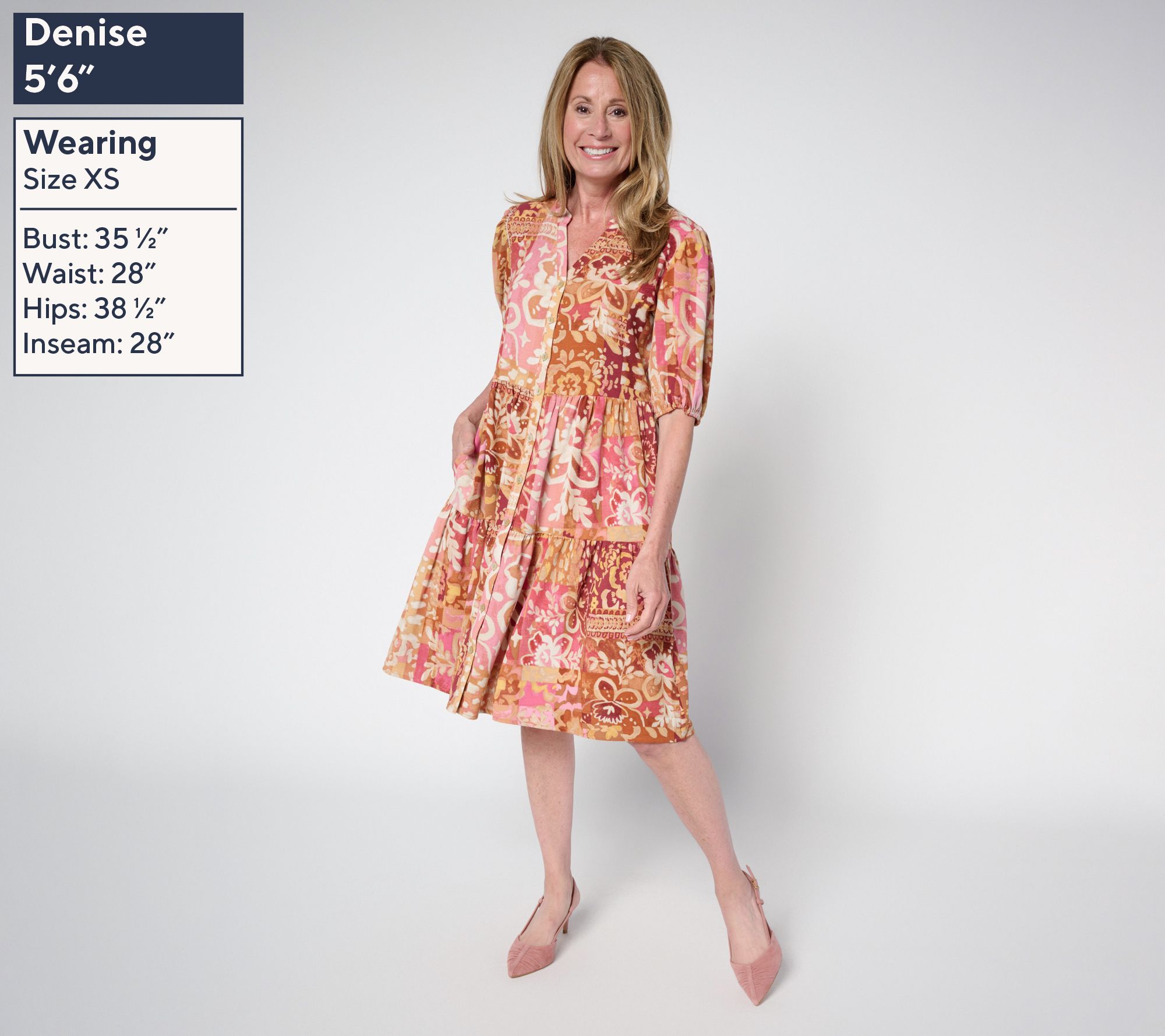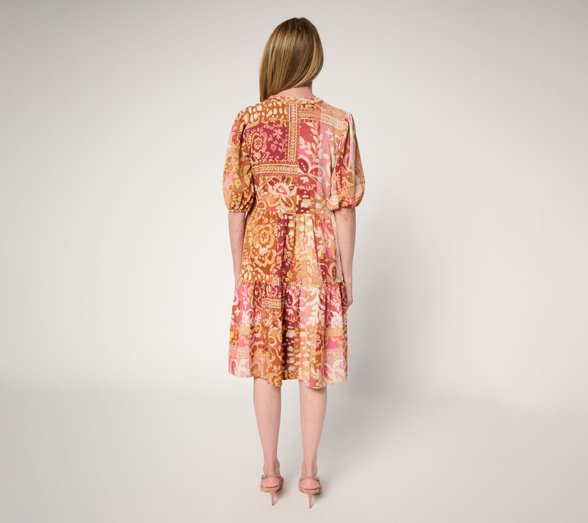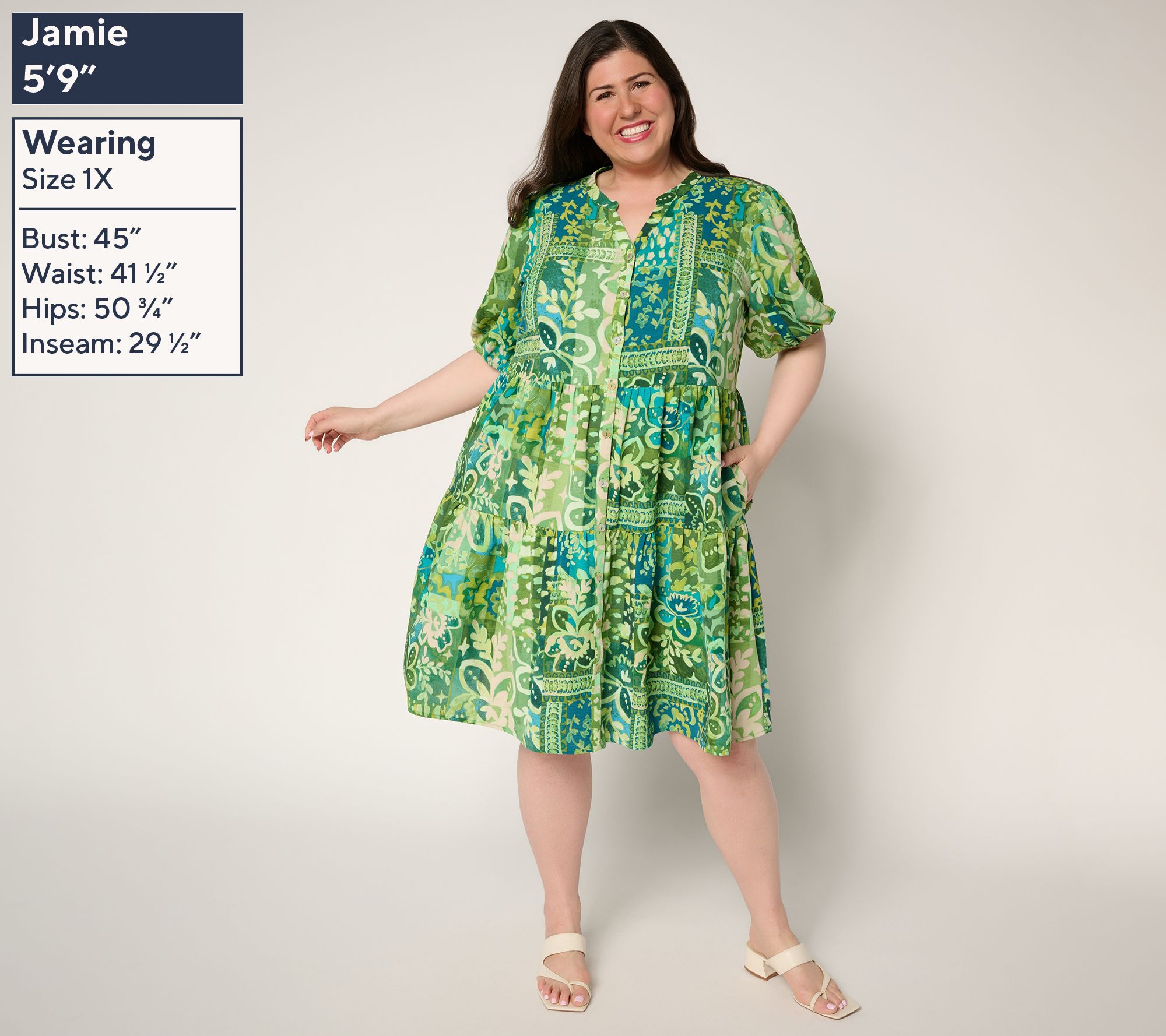 Show up for sunny-day plans (or an evening invite) in this playful St. Tropez-printed dress, styled with a tiered bottom and softly puffed sleeves. The Y-neckline and button-front design give you easy sophistication, while the relaxed fit keeps things comfortable from brunches to garden celebrations. From Susan Graver.