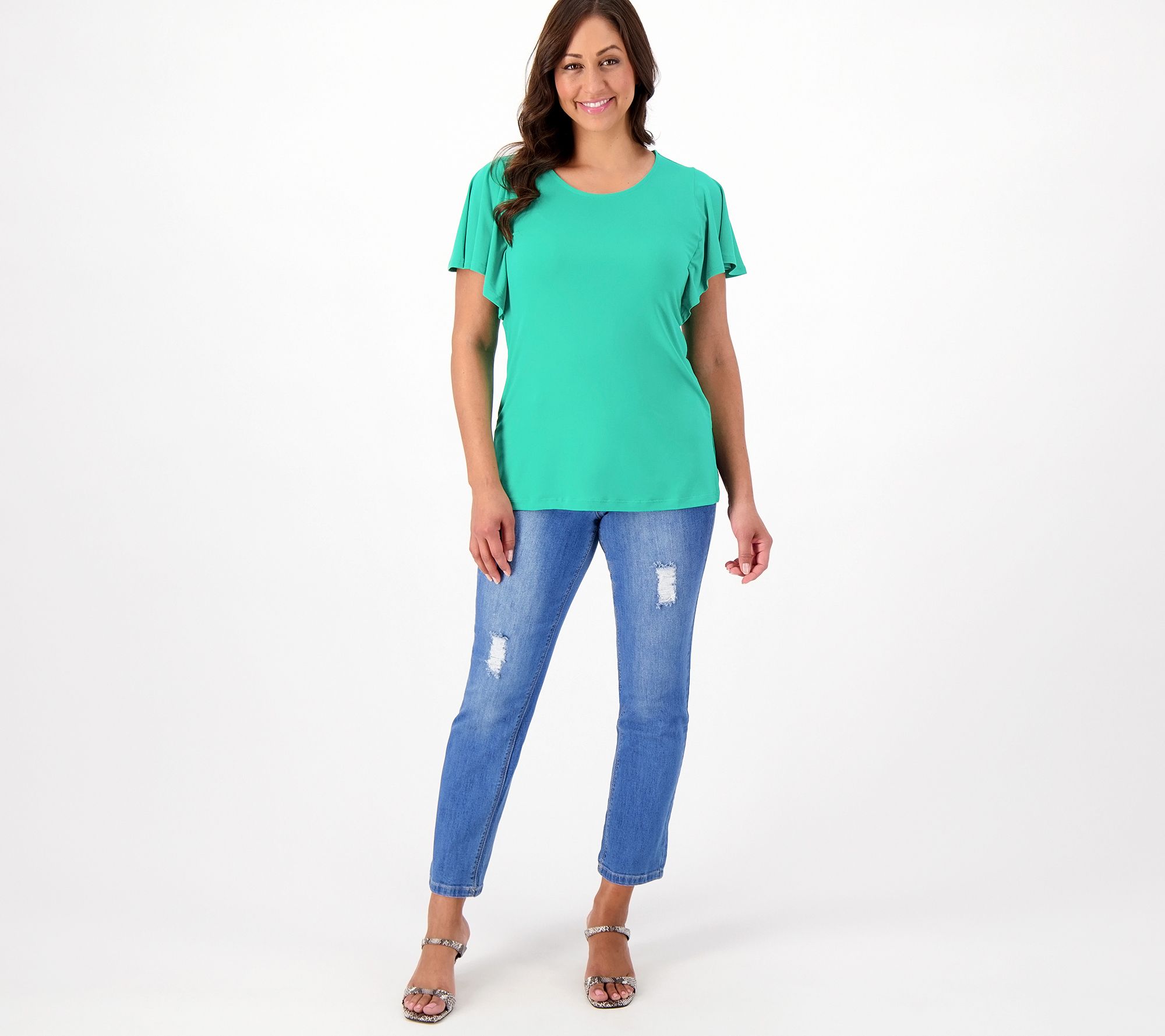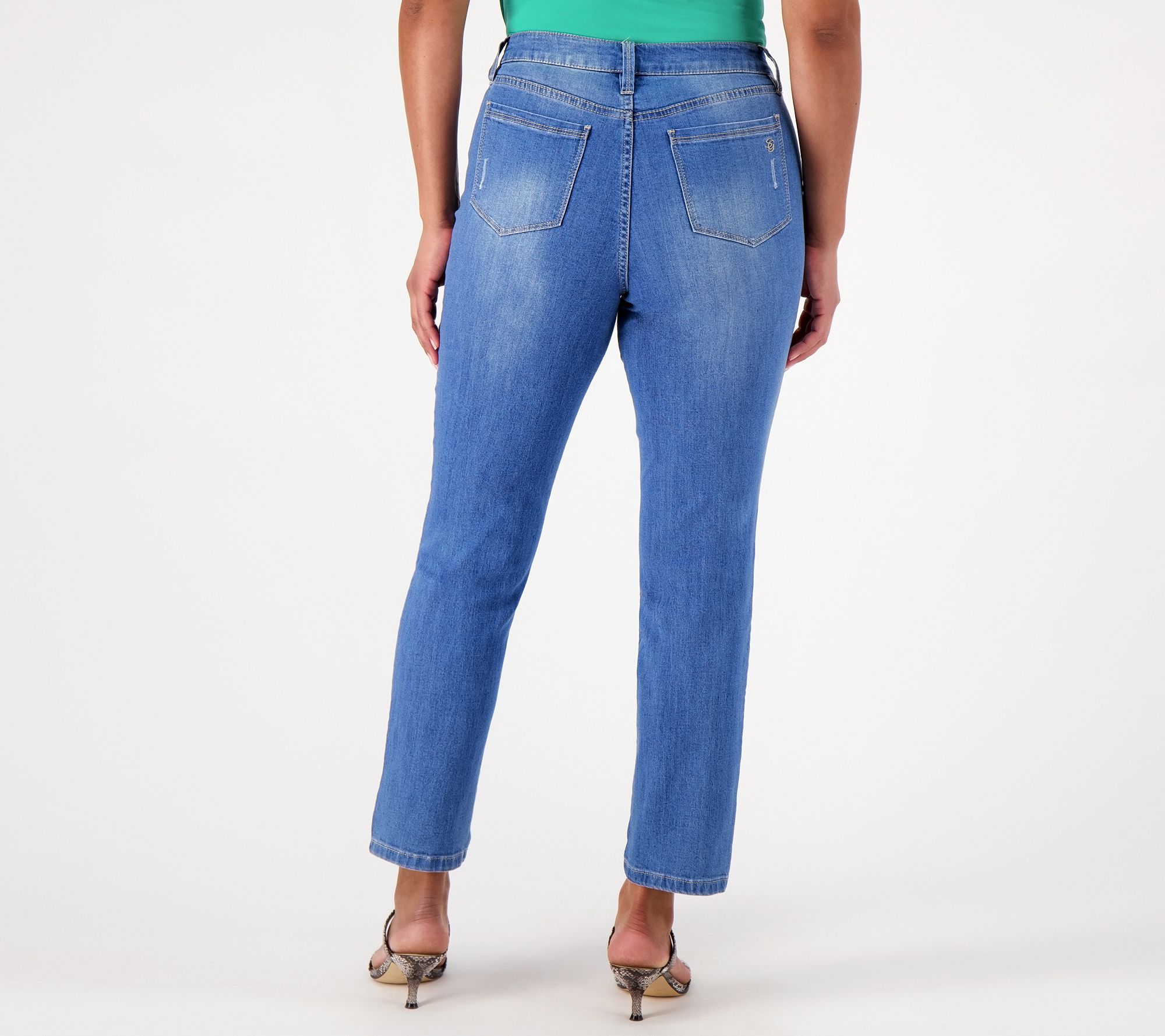 Susan Graver Petite Straight Leg Distressed Ankle Jean