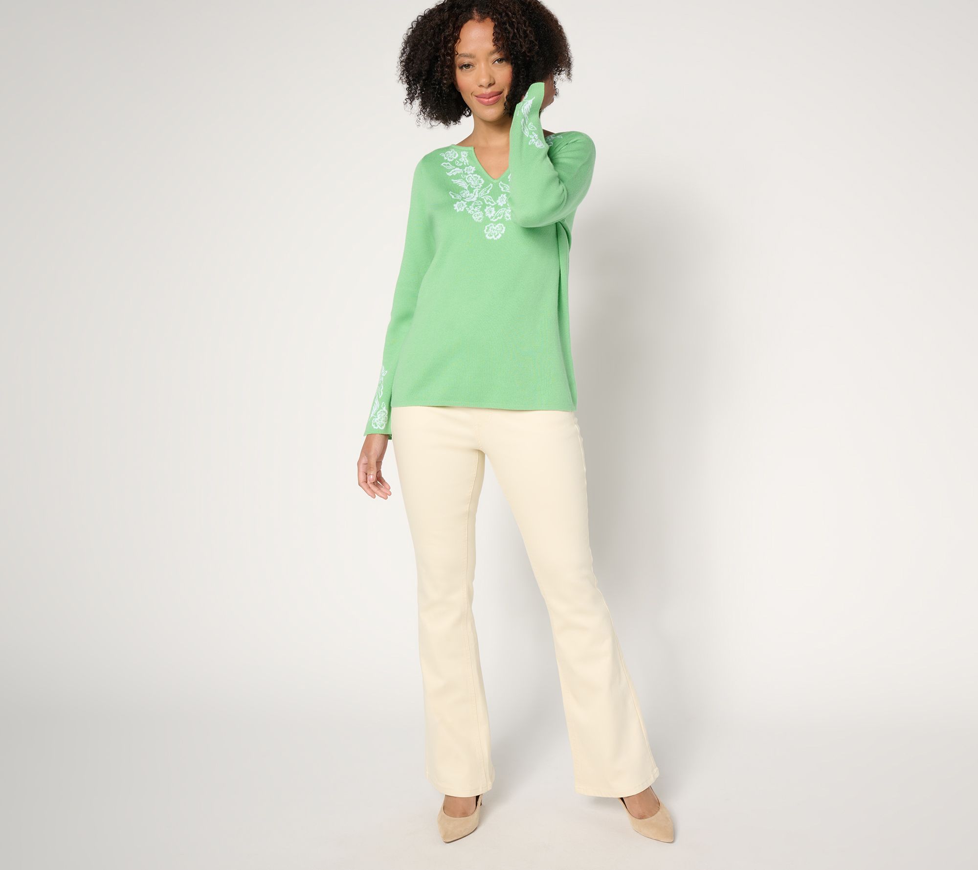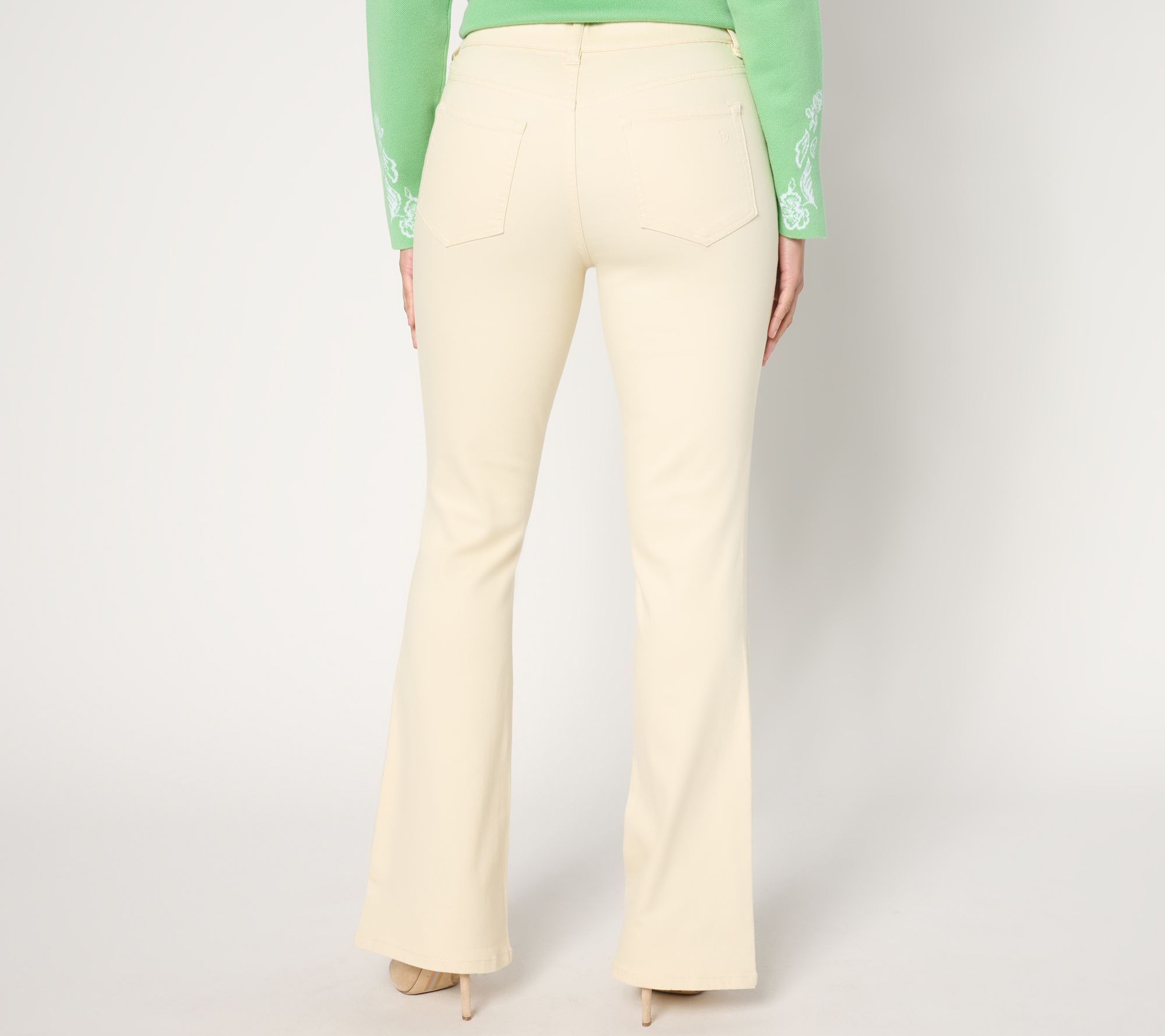 Not feeling a zipper today? We hear you! These stretch-woven jeans pull on with ease, providing a flattering and accommodating fit from the contoured waist to the trendy full-length flare. From Susan Graver.